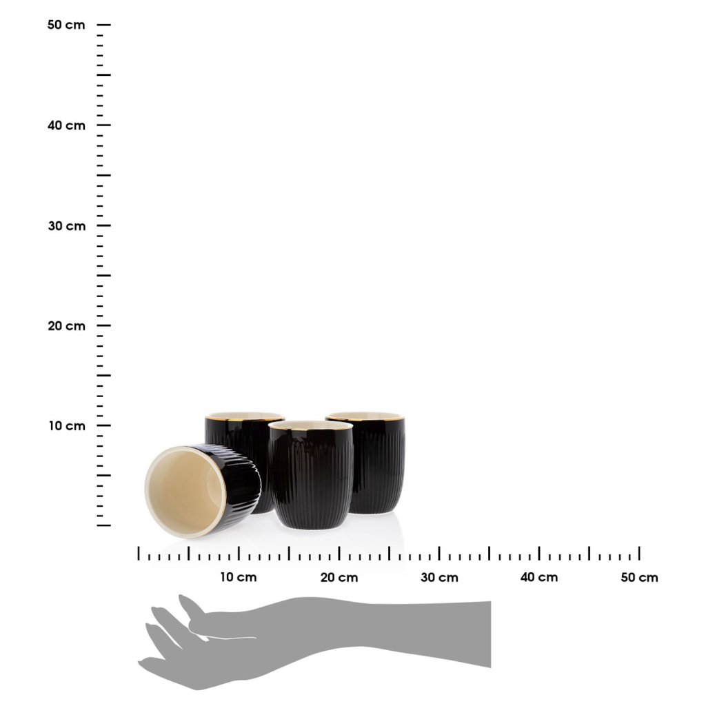Sada 4 elegantních sklenic z keramiky a 4 zlatých lžiček v glamour stylu. Žebrovaný povrch poskytuje pevné uchopení a zabraňuje sklouznutí. Keramická souprava je vhodná také jako dárek.Buďte první, kdo napíše příspěvek k této položce.