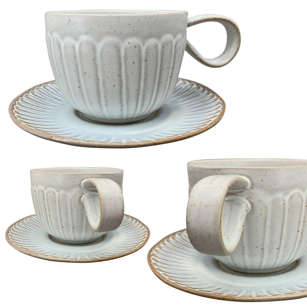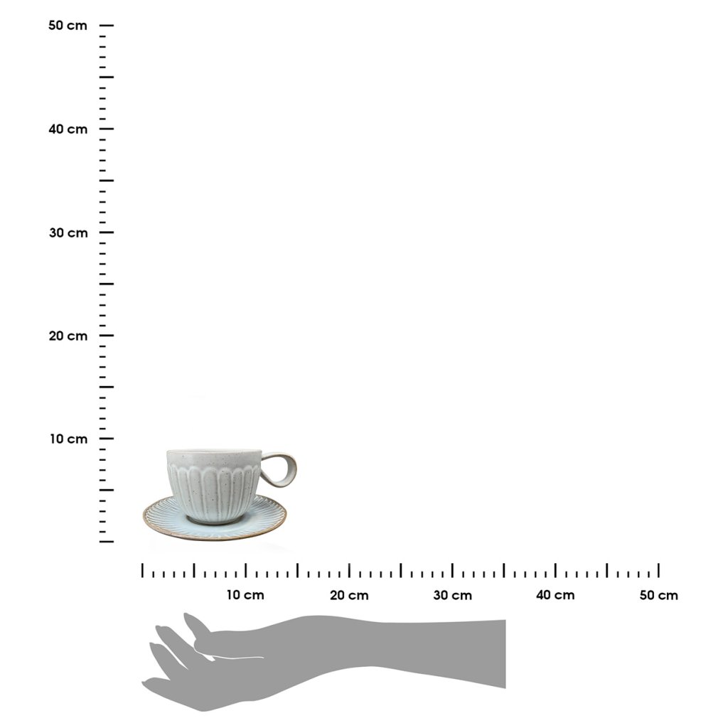 Keramický šálek s podšálkem Grau o objemu 190 ml je elegantní volbou pro servírování kávy nebo čaje. Vyrobená z kvalitní kameniny se vyznačuje vysokou odolností vůči poškození i každodennímu používání. Šedý odstín s jemným reliéfním zdobením dodává šálku nadčasový vzhled a dokonale doplňuje kolekci stolního nádobí. Díky klasickému tvaru a preciznímu zpracování je souprava vhodná pro každodenní rituály i slavnostní chvíle. Možnost mytí v myčce na nádobí a bezpečné použití v mikrovlnné troubě z ní dělají praktický doplněk do každé domácnosti.Doplňkové parametry