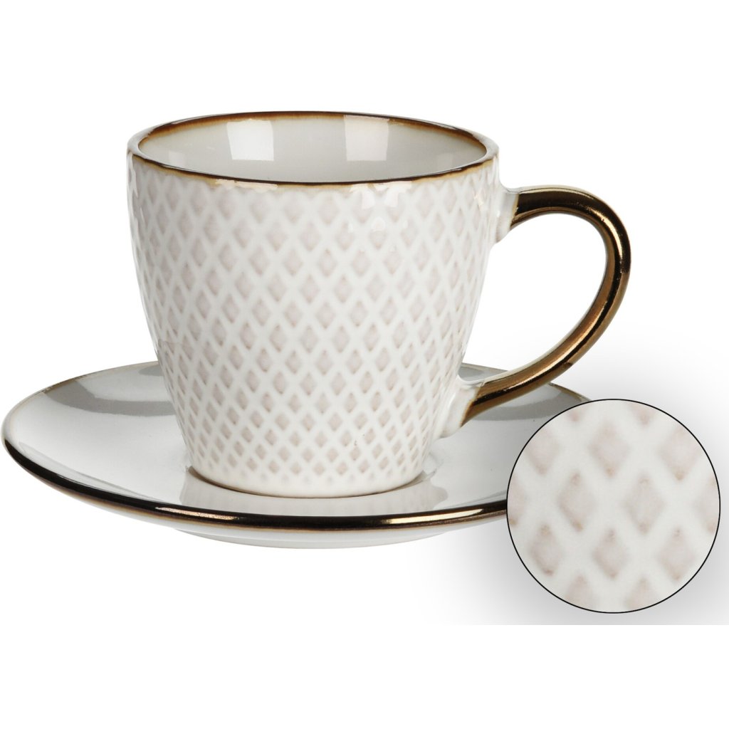 Elegantní šálek s podšálkem na kávu nebo čaj, který se vyznačuje nejen keramickým zpracováním, ale také zajímavým designem. Šálek je vhodný jako dárek. Je možné používat ji v mikrovlnné troubě a myčce na nádobí.Doplňkové parametry