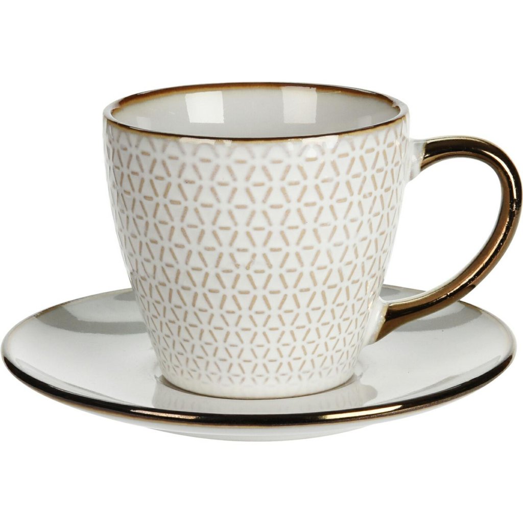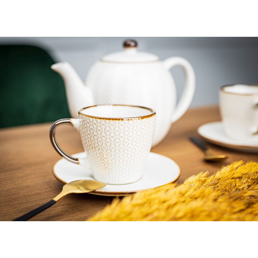 Elegantní šálek s podšálkem na kávu nebo čaj, který se vyznačuje nejen keramickým zpracováním, ale také zajímavým designem. Šálek je vhodný jako dárek. Je možné používat ji v mikrovlnné troubě a myčce na nádobí.Doplňkové parametry