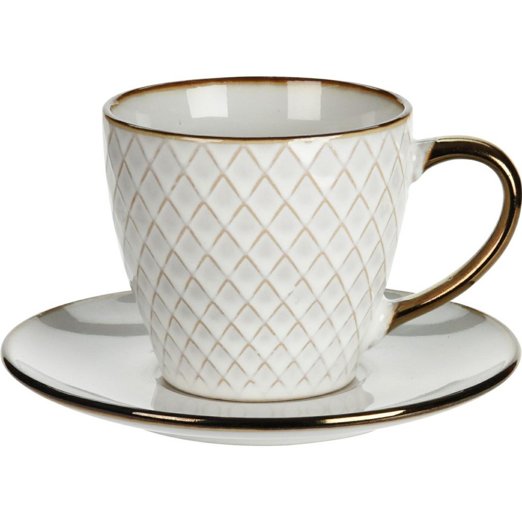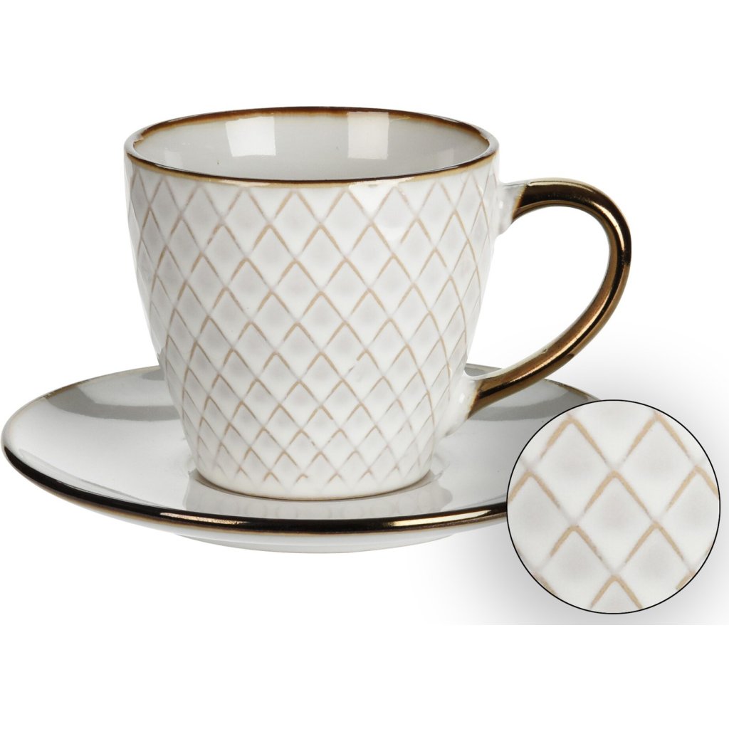 Elegantní šálek s podšálkem na kávu nebo čaj, který se vyznačuje nejen keramickým zpracováním, ale také zajímavým designem. Šálek je vhodný jako dárek. Je možné používat ji v mikrovlnné troubě a myčce na nádobí.Doplňkové parametry