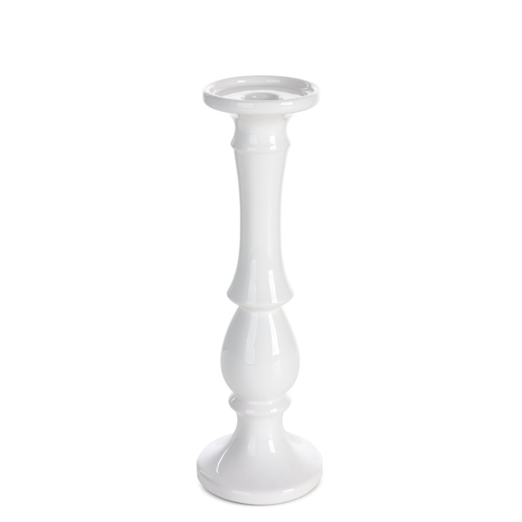 Dekorativní svícen, šířka: 10 cm, délka: 10 cm, výška: 32 cm, barva: bílá, složení: 100% keramická hlína.Doplňkové parametry