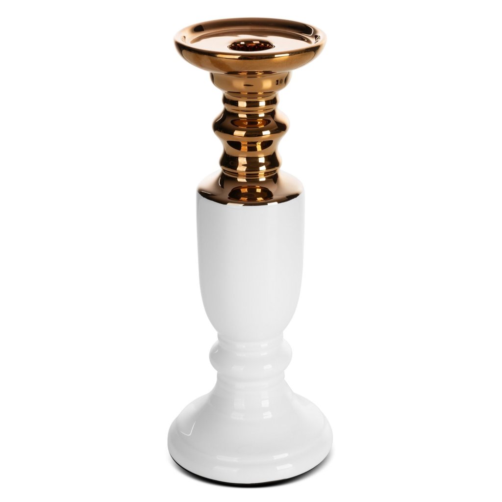 Dekorativní svícen, šířka: 10 cm, délka: 10 cm, výška: 26 cm, barva: bílá, složení: 100% keramická hlína.Doplňkové parametry