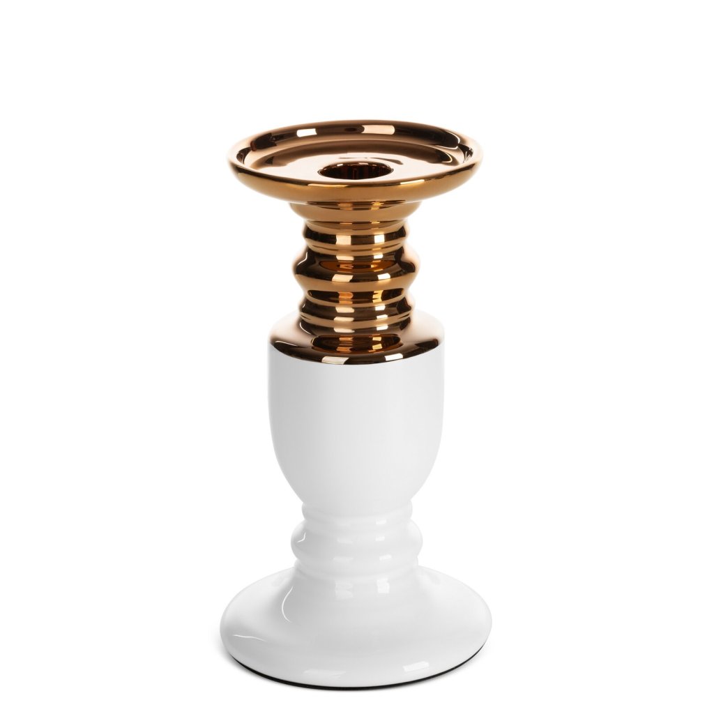 Dekorativní svícen, šířka: 9 cm, délka: 9 cm, výška: 17 cm, barva: bílá, složení: 100% keramická hlína.Doplňkové parametry