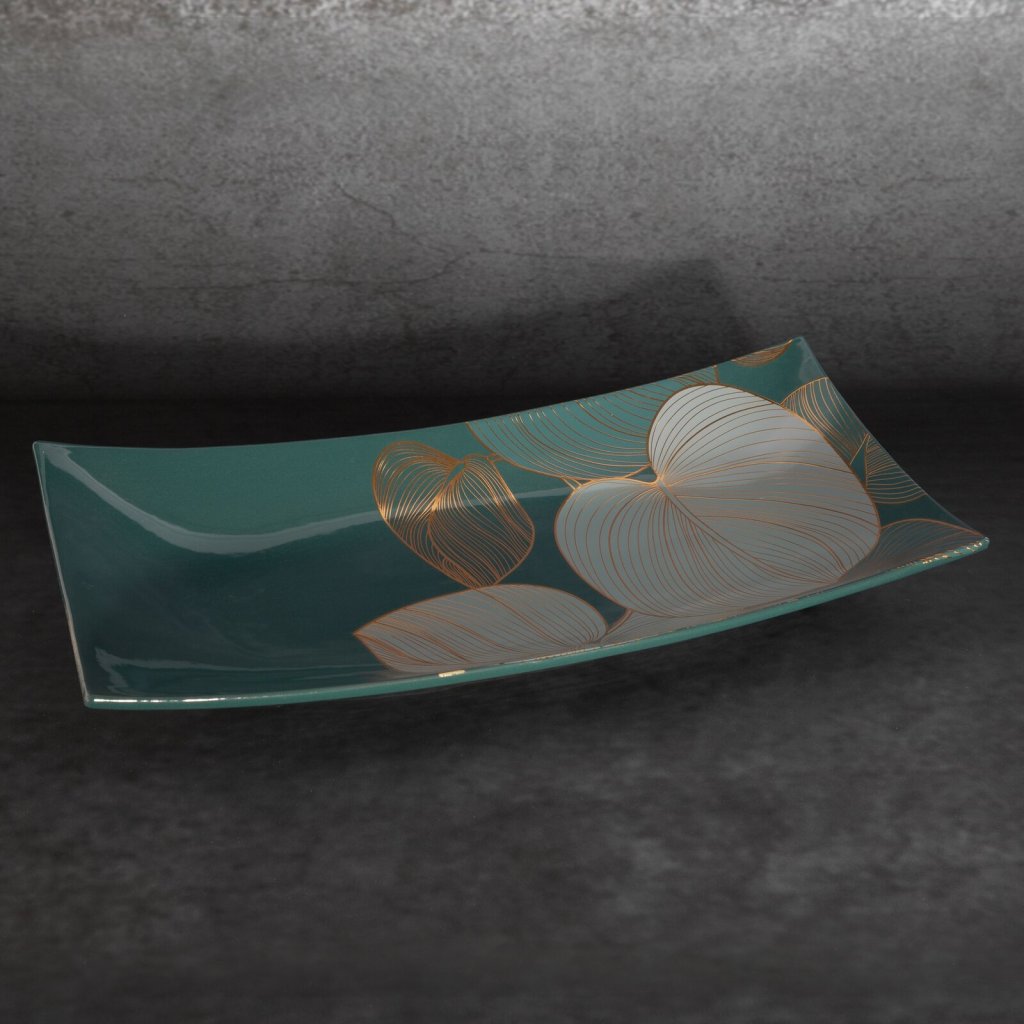Keramický talíř Limitovaná kolekce. šířka: 41 cm, délka: 20 cm, barva: zelená/zlatá, složení: keramická hlínaDoplňkové parametry