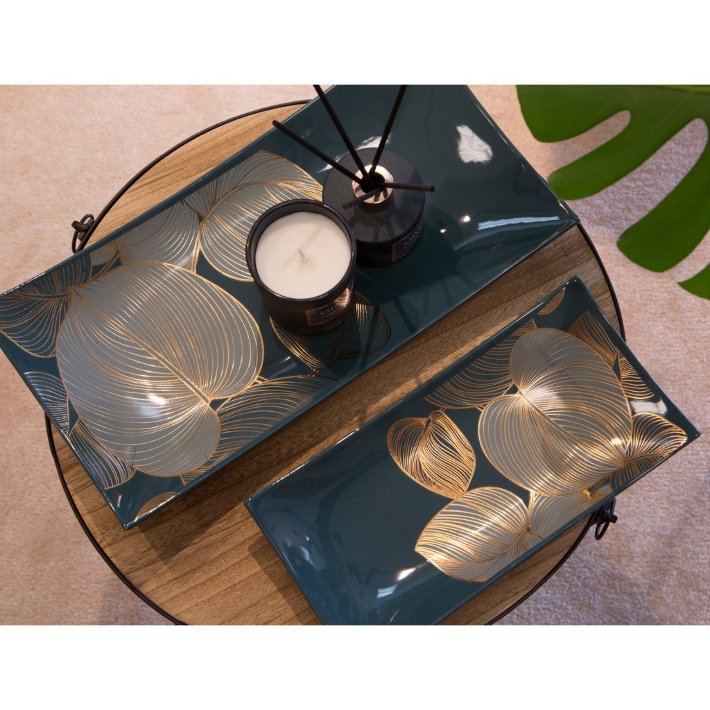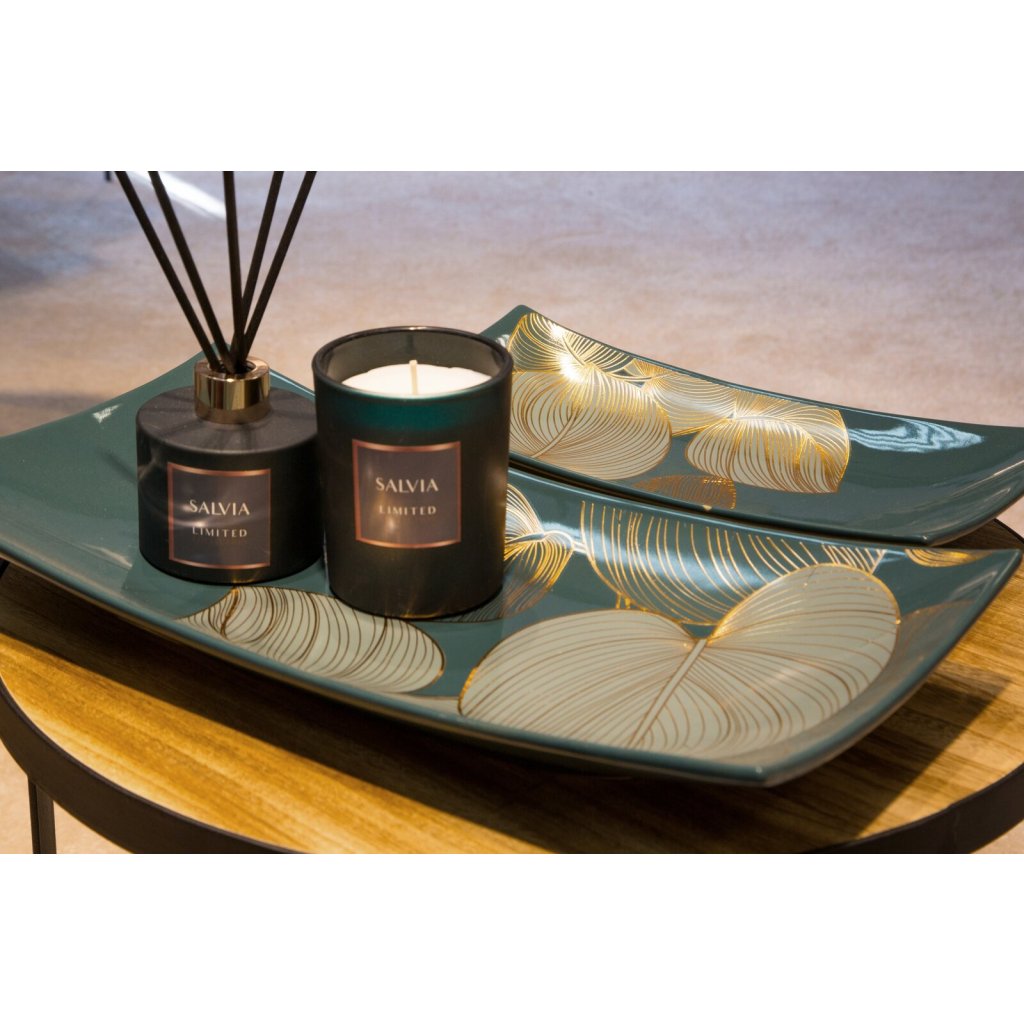 KERAMICKÝ TALÍŘ LIMITED COLLECTION SALVIA 41X20 CM ZELENÁ/ZLATÁ