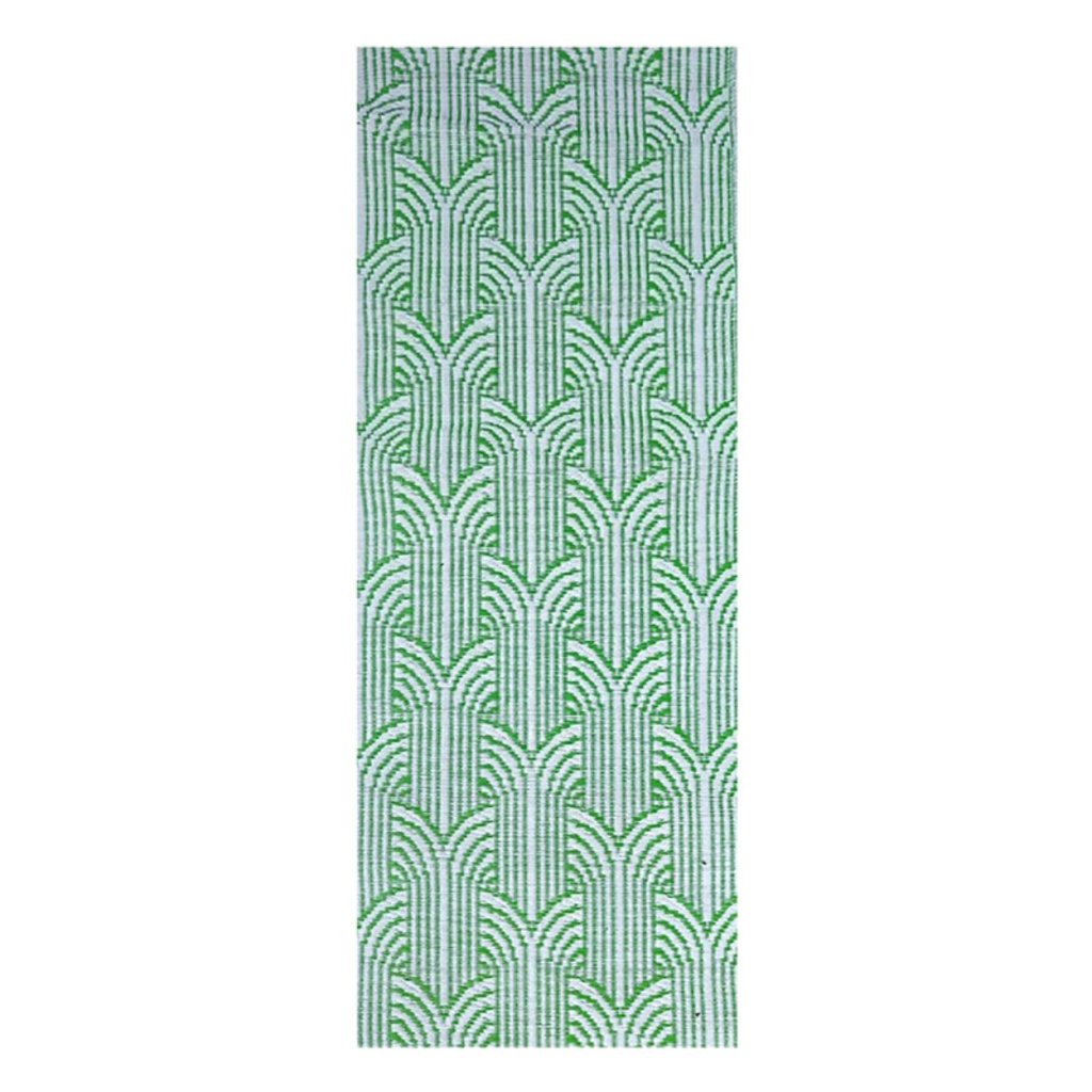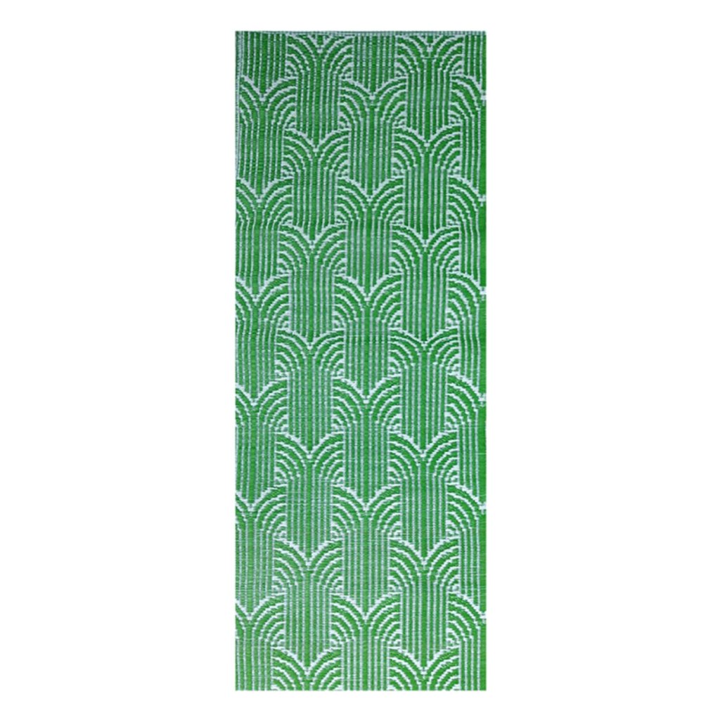 Koberec Holly o rozměrech 68 × 125,5 cm je vnější koberec určený na terasu, balkon nebo zahradu , který zaujme zeleným geometrickým vzorem a spolehlivou funkčností. Je ideální pro ty, kteří hledají praktický i dekorativní doplněk do exteriéru . Vyroben z odolného polypropylenu , koberec odolává povětrnostním podmínkám, dobře propouští vodu a je nenáročný na údržbu . Stačí ho jednoduše otřít vlhkým hadříkem . Jeho oboustranné provedení umožňuje změnu vzhledu dle potřeby – dva vzory v jednom kuse . Jemně art-deco inspirovaný motiv spolu se svěží zelenou barevností přináší do prostoru uklidňující a příjemnou atmosféru . Tento praktický koberec do exteriéru zároveň chrání podlahu před poškozením či znečištěním a výborně se hodí do moderních i přírodně laděných vnějších prostor.Doplňkové parametry