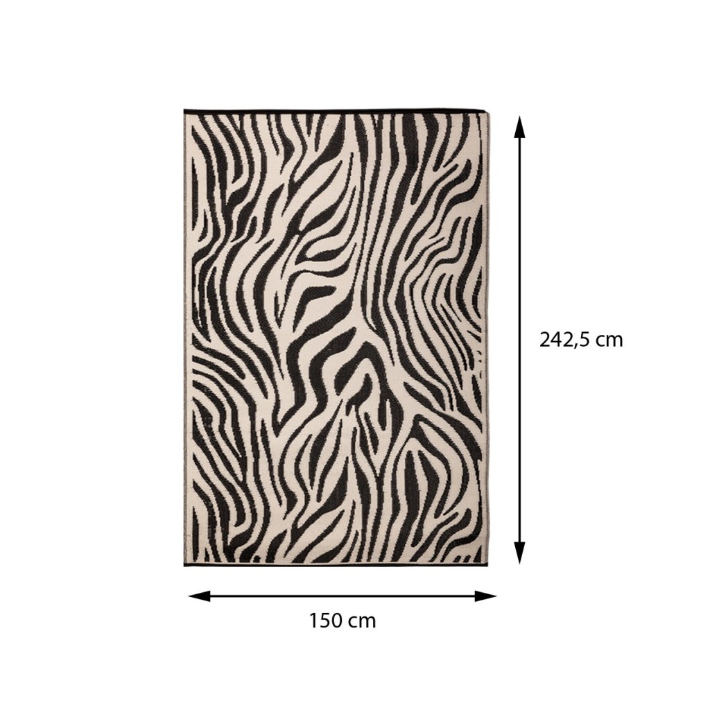 Koberec Zebra o rozměrech 150 × 242,5 cm je ideální na terasu, balkon nebo zahradu . Vyroben z odolného polypropylenu , který vyniká dlouhou životností a odolností vůči povětrnostním vlivům , nabízí praktické řešení pro každý exteriér.