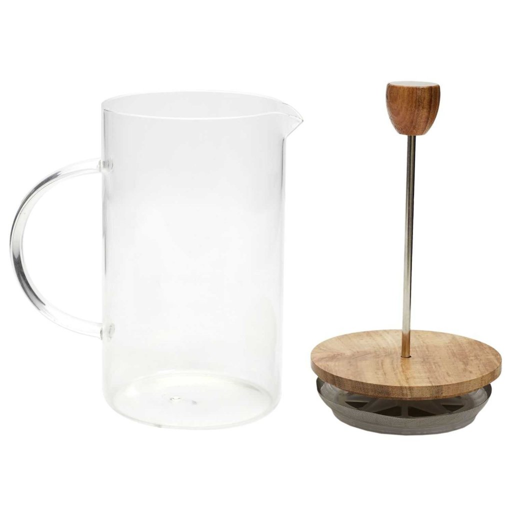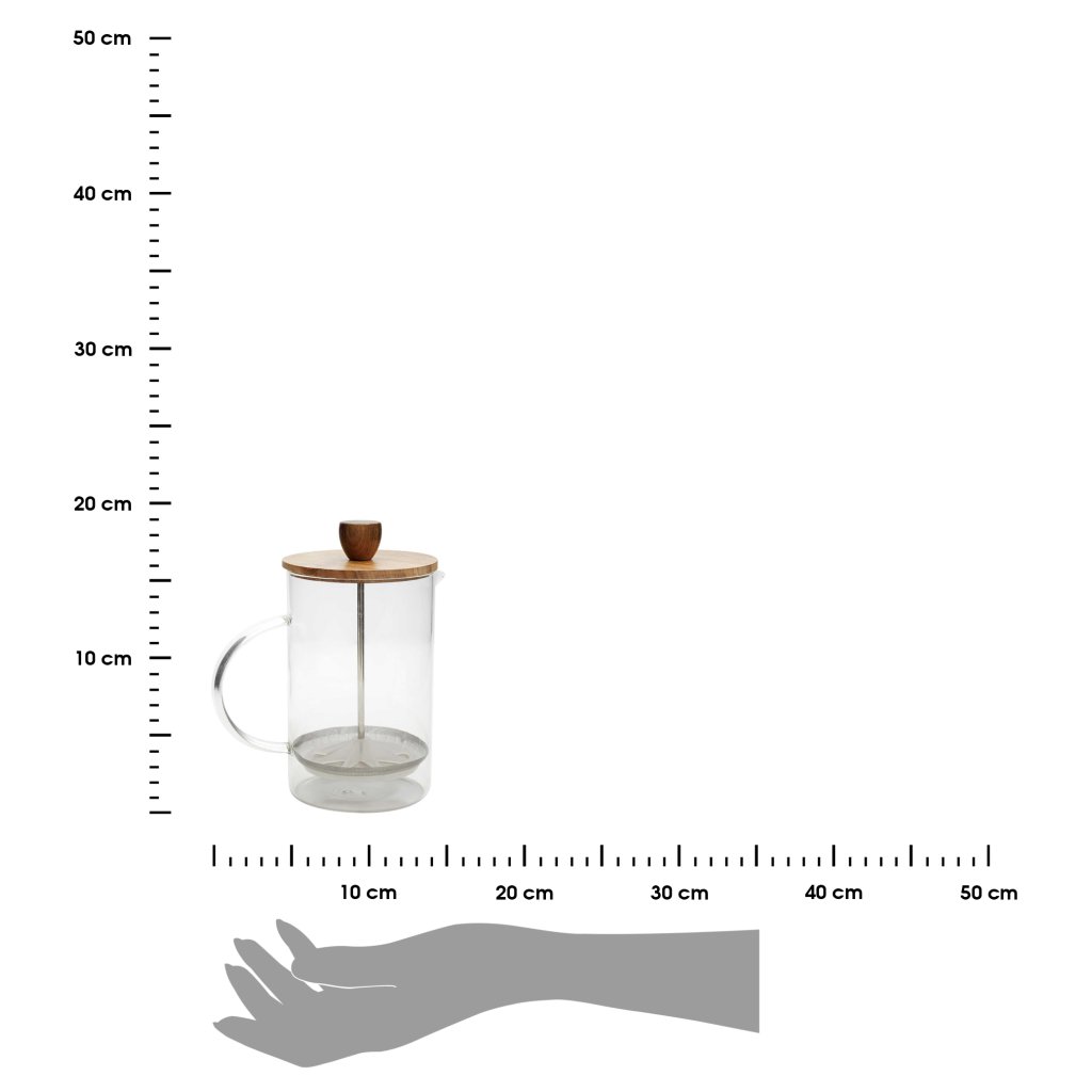 Konvice na kávu Naturo o objemu 850 ml je elegantní french press , který spojuje moderní minimalismus s přírodním stylem . Vyrobená z borosilikátového skla odolného vůči vysokým teplotám, je doplněna o praktické dřevěné víko a rukojeť z akáciového dřeva . Vestavěný nerezový píst s jemným sítkem umožňuje připravit čistý a aromatický nápoj bez zbytků kávy . Díky objemu je ideální pro přípravu kávy pro 3 až 4 osoby , ať už doma, v kanceláři nebo při společenských setkáních. Konvice Naturo se hodí do ekologického a estetického životního stylu – funguje bez elektřiny a nepotřebuje kapsle. Kombinace čirého skla a přírodního dřeva z ní činí vkusný doplněk do každé kuchyně nebo kávového koutku.Doplňkové parametry