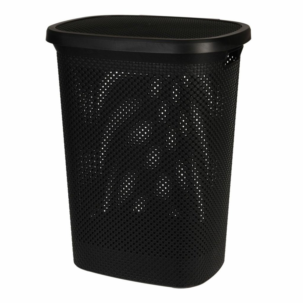 Praktický, uzavřený koš na prádlo. Prolamovaná povrchová úprava mu dodává zajímavý vzhled a díky černé barvě a univerzálnímu tvaru se perfektně hodí do každé koupelny. Díky velké kapacitě se do něj vejde spousta prádla. Má také praktické rukojeti, díky kterým se snadno přenáší. Koš je vyroben z lehkého a odolného plastu.Doplňkové parametry