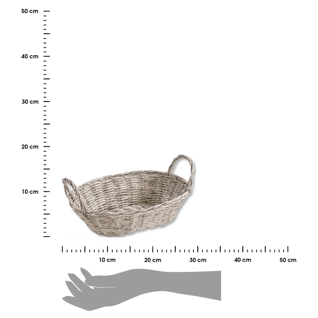 Oválný, tkaný košík na chléb nebo ovoce z plastu ve světle šedém odstínu. Klasický vzhled bude dokonale ladit se zbytkem nádobí. Dobře poslouží v kuchyni, jídelně, obývacím pokoji nebo v létě na zahradě. Košík má větrací otvory, které udržují přiměřenou vlhkost, díky čemuž chléb nebo ovoce vydrží déle čerstvé. Hladký povrch košíku usnadňuje jeho udržování v čistotě. Stačí ho otřít vlhkým hadříkem, aby vypadal skvěle.Doplňkové parametry