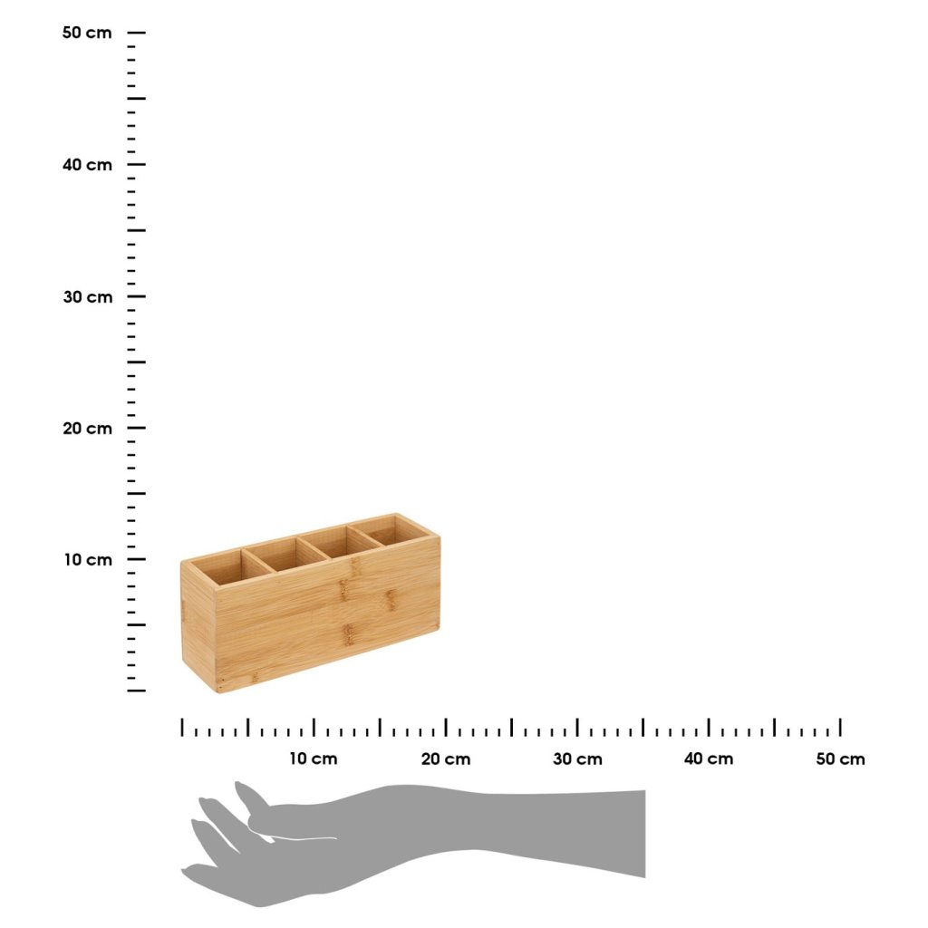 Výsledkem používání organizérů je uklizený prostor a to, že budete mít všechno po ruce. To je nepochybná výhoda pro každého, kdo oceňuje moderní a funkční řešení. Navzdory malým rozměrům je organizér vybaven čtyřmi oddělenými přihrádkami, které vám umožní umístit kosmetiku, hygienické a kosmetické doplňky. Nádoba je vyrobena z kvalitního bambusového dřeva, vyznačujícího se vysokou životností a odolností proti vlhkosti. Originální vzhled organizéru umožňuje, aby se vešel téměř do každého stylu interiéru.Doplňkové parametry