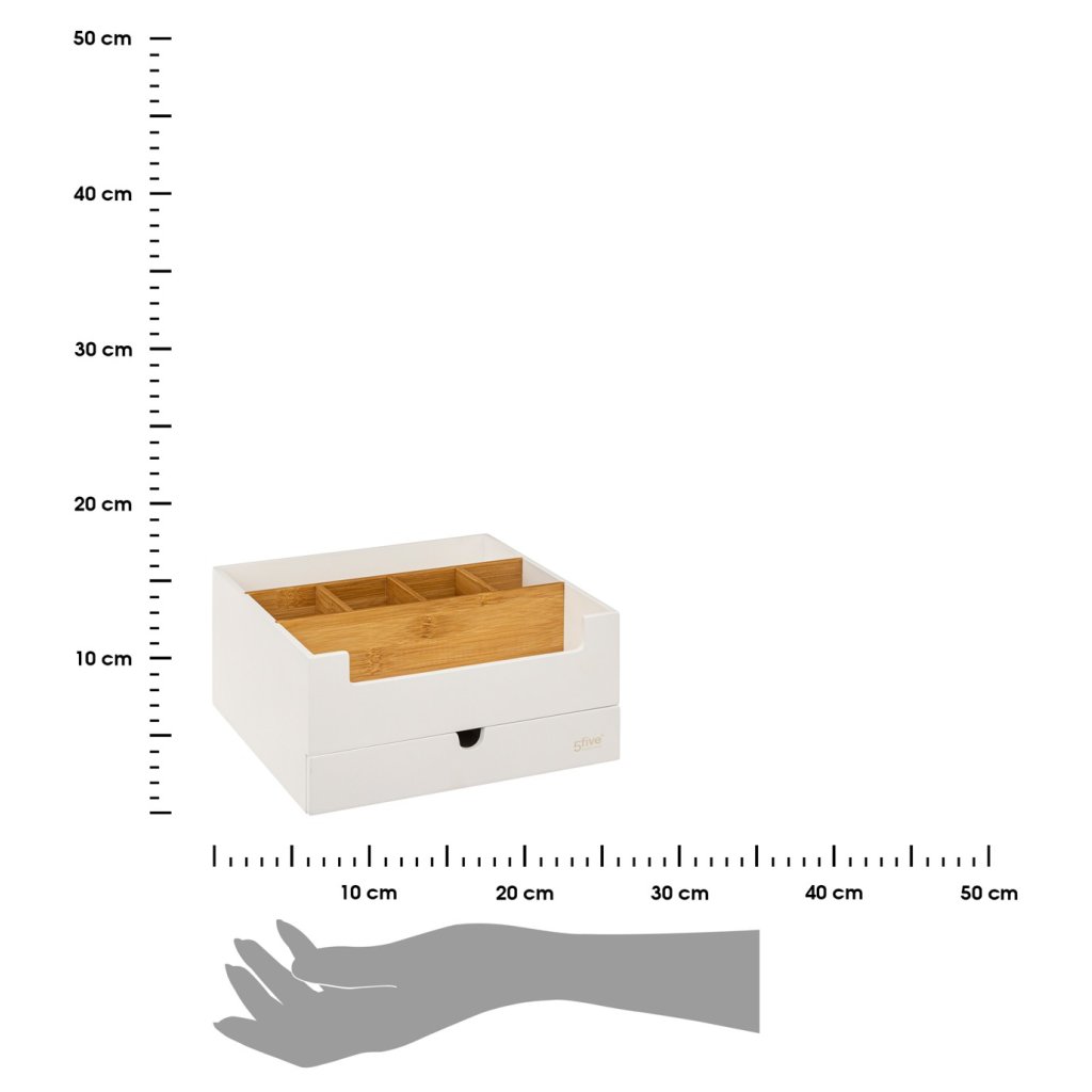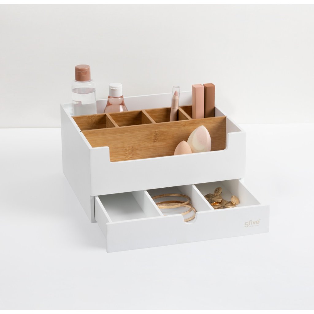 Kosmetický organizér Natureo, bílá/s dřevěnými prvky