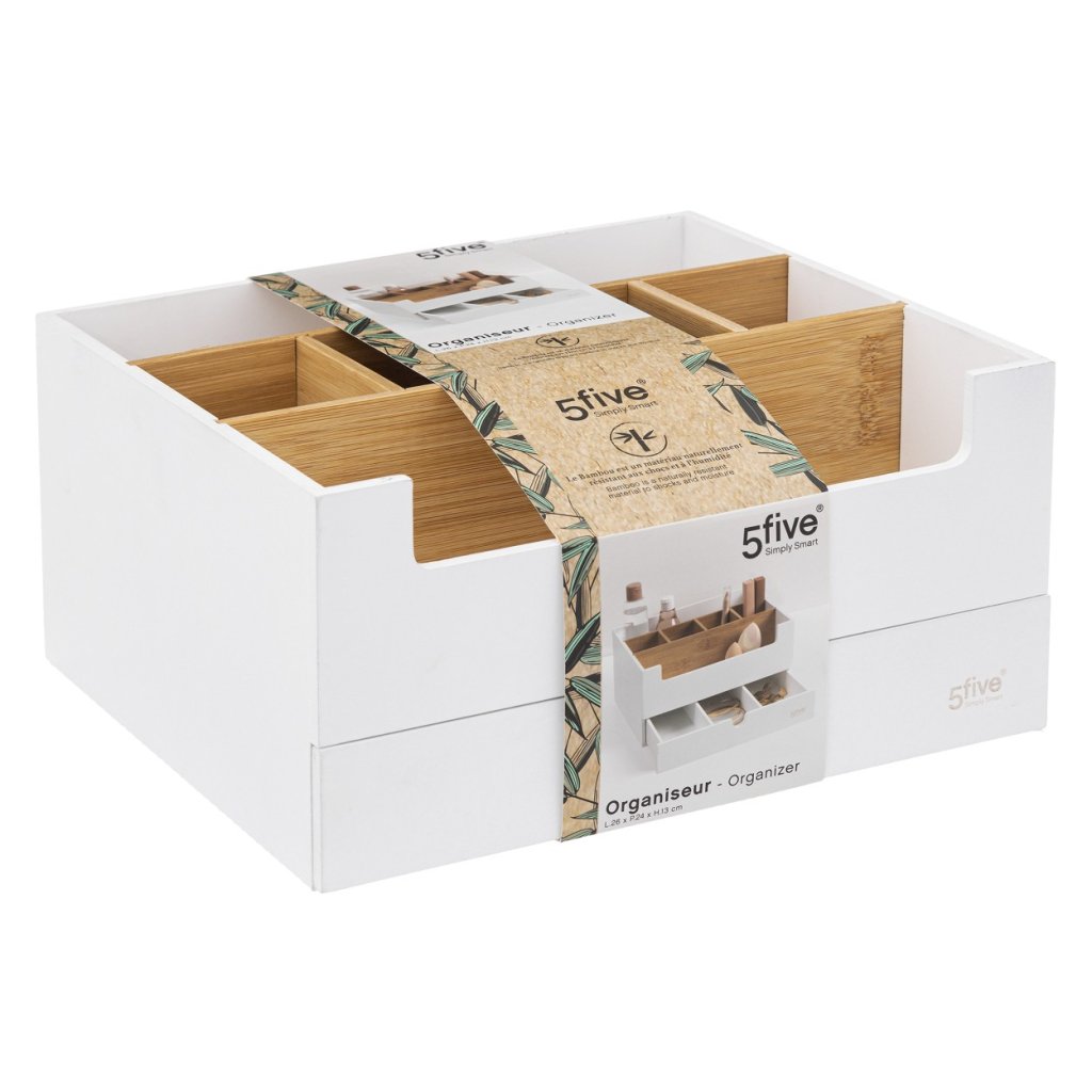 Výsledkem používání organizérů je uklizený prostor a to, že budete mít všechno po ruce. To je nepochybná výhoda pro každého, kdo oceňuje moderní a funkční řešení. Navzdory malým rozměrům je organizér vybaven šesti samostatnými přihrádkami a praktickým šuplíkem, který vám umožní umístit kosmetiku. Nádoba je vyrobena z kvalitního bambusového dřeva, vyznačujícího se vysokou životností a odolností proti vlhkosti. Originální vzhled organizéru umožňuje, aby se vešel téměř do každého stylu interiéru.Doplňkové parametry