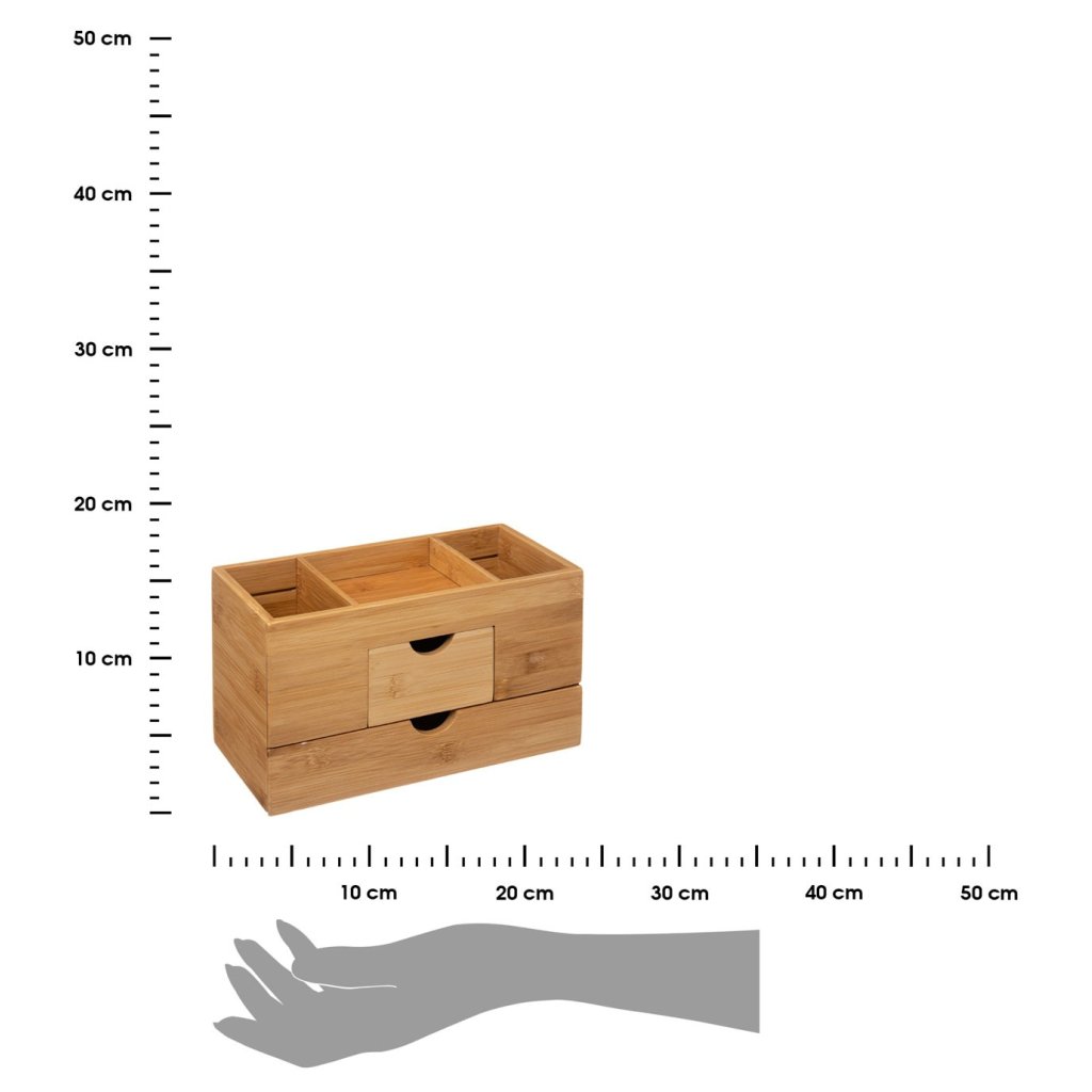 Úložný box je předmět, který vám umožní uspořádat cenné šperky, jakož i sponky do vlasů a jiné drobnosti. Box je vyroben z bambusového dřeva, díky čemuž je pevný a zaručuje, že dlouho vydrží. Nádoba má dvě zásuvky a tři mini přihrádky, do kterých se vejde velké množství drobností. Díky svému modernímu designu a dobře zvoleným barvám je box skvělým doplňkem do každého typu interiéru.Doplňkové parametry
