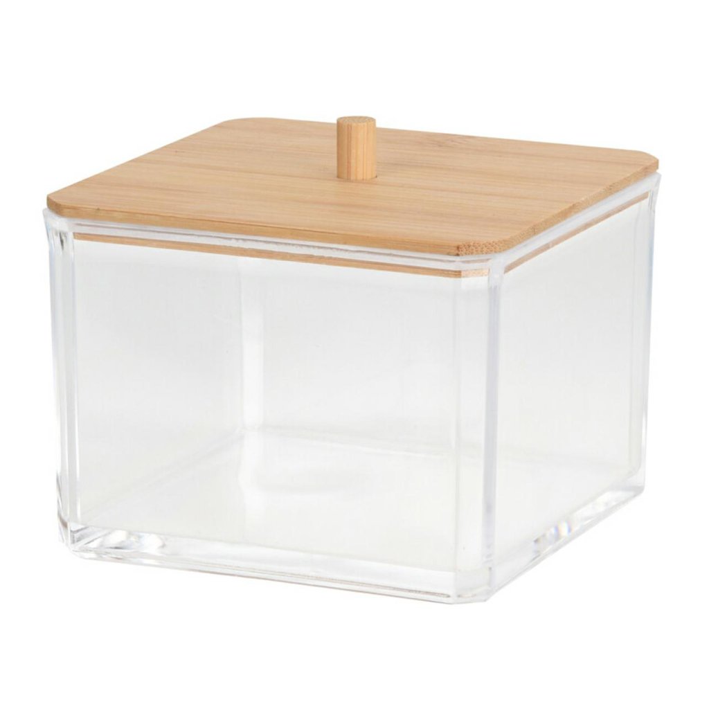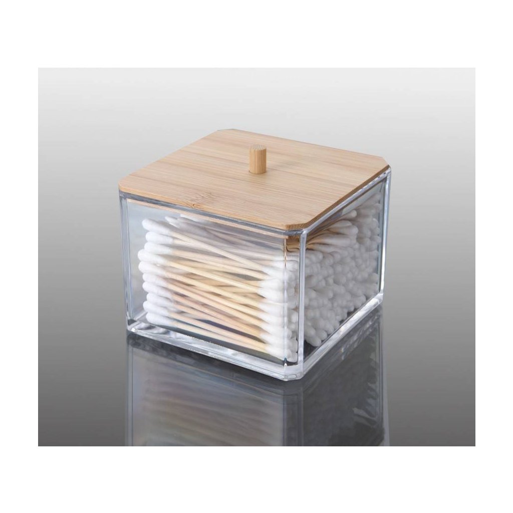 Koupelnová nádoba Elegan, čirá/s dřevěnými prvky