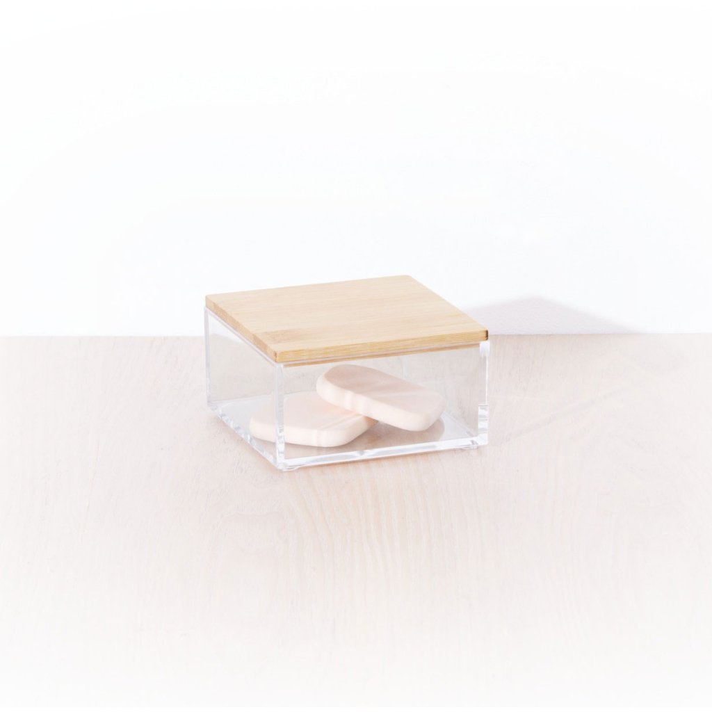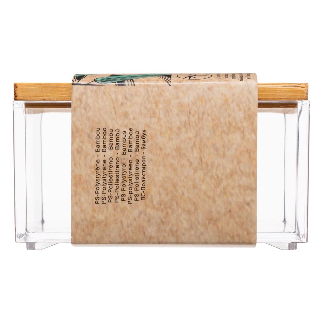 Koupelnová nádoba vám pomůže dobře uspořádat drobnosti, výborně se hodí k odkládání kosmetiky a kosmetických doplňků. Vyrobený z průhledného plastu a bambusu působí moderně a elegantně, hodí se téměř do každého stylu interiéru. Jednotlivé prvky nádoby do sebe dokonale zapadají a vytvářejí ucelený celek. Uzavřená nádoba chrání obsah před prachem a poškozením.Doplňkové parametry