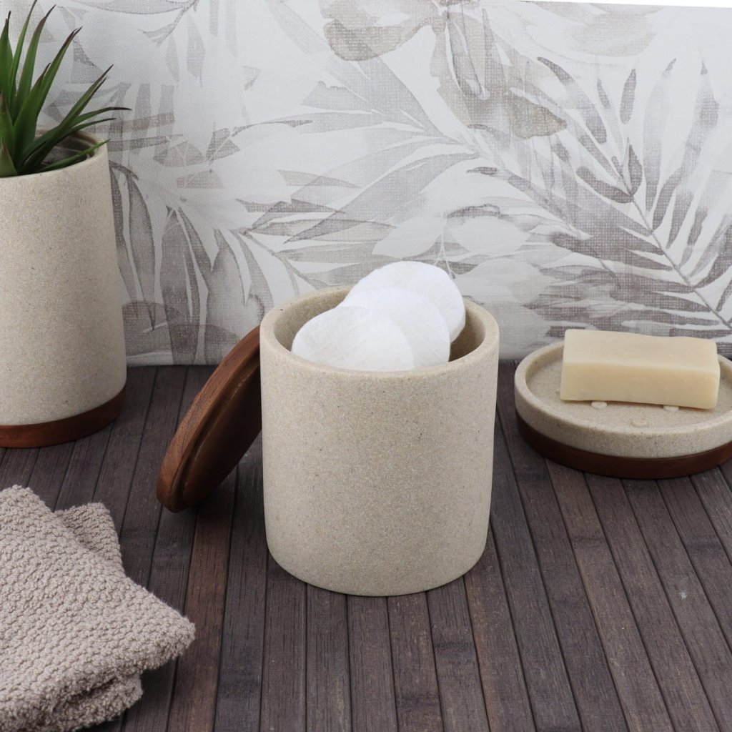 Elegantní a praktická nádoba na kosmetické tampony z kolekce Vegar od francouzské značky Tendance, která dokonale zapadne do vaší koupelny a pomůže vám zorganizovat si každodenní péči. Je navržena pro bezpečné skladování a snadný přístup k obsahu. Vyrobeno z vysoce kvalitních materiálů zajišťuje odolnost a ochranu proti vlhkosti. Díky svému modernímu a minimalistickému designu se naše nádoba perfektně hodí do různých stylů koupelny.Kolekce Vegar se vyznačuje elegantním a přírodním designem, který spojuje syrovou krásu kamene s teplem dřeva. Jemné barvy a kontrastní dřevěné akcenty způsobují, že každý prvek této kolekce přináší harmonii a klid do vašeho prostoru.