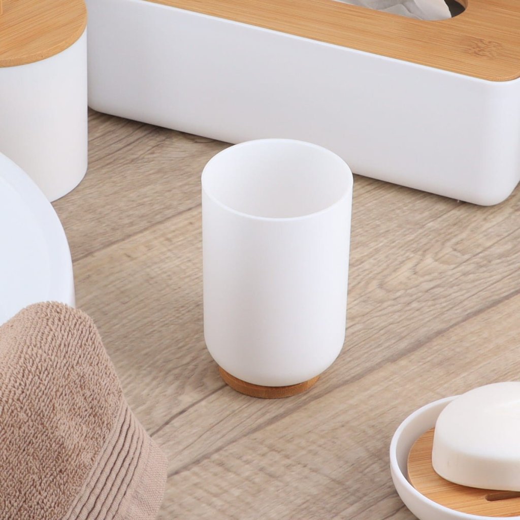 Koupelnový pohár Besson, bílá/s dřevěnými prvky, 300 ml