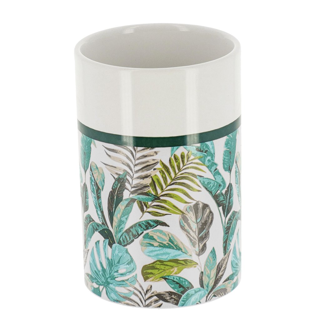 Koupelnový pohár Jardin z kvalitní keramiky zaujme tropickým motivem listů v odstínech zelené, béžové a světle tyrkysové. Je ideální na zubní kartáčky, kosmetické štětce či jiné drobné koupelnové doplňky . každodenní hygienu. Pohár je součástí kolekce Jardin a lze jej doplnit o dávkovač na mýdlo, mýdelničku a WC soupravu , čímž vytvoříte sjednocený a stylový celek . Praktický a zároveň dekorativní doplněk, který osvěží vzhled vaší koupelny .Doplňkové parametry