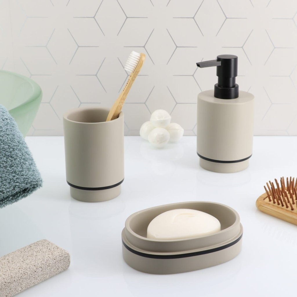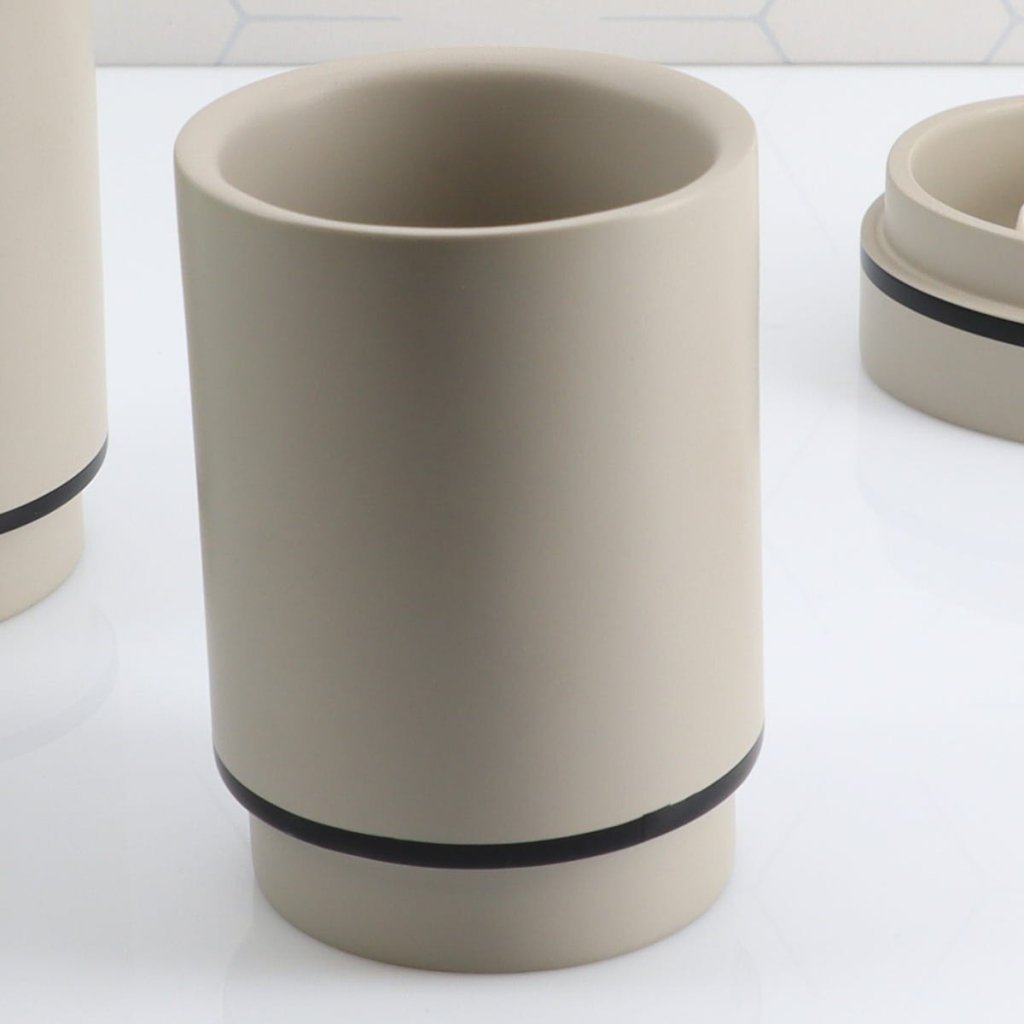 Koupelnový pohár Longan, béžová/s černými prvky