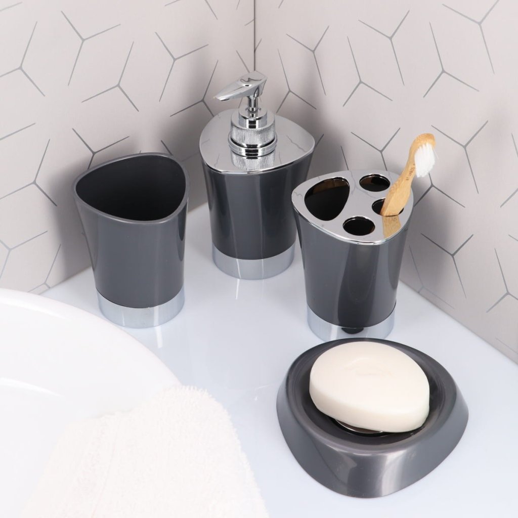 Praktický koupelnový hrnek z kolekce Cuesta od francouzské značky Tendance, který je ideální pro odkládání zubních kartáčků a pasty. Hrnek vám pomůže udržet pořádek v koupelně a poskytne pohodlné místo pro uložení hygienické soupravy. Je vyroben z vysoce kvalitních materiálů, je odolný a snadno se čistí. Jeho estetický design se hodí do každé koupelny a díky univerzálnímu použití jej lze použít ik odkládání jiných drobných předmětů osobní hygieny. Zorganizujte si koupelnu a užijte si funkční nádobu na zubní kartáčky, pastu a další. V naší nabídce naleznete i dávkovač mýdla, koupelnový hrnek a misku na mýdlo ze stejné kolekce.Doplňky z kolekce Cuesta se vyznačují kónickým tvarem. Šedá barva se perfektně hodí k chromovým doplňkům a vytváří tak poutavý celek. Kolekce Cuesta je ideální volbou pro lidi, kteří hledají jednoduché a minimalistické doplňky.