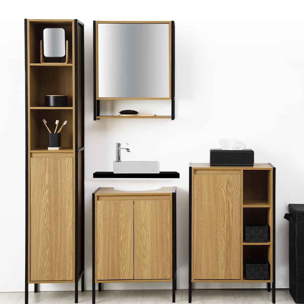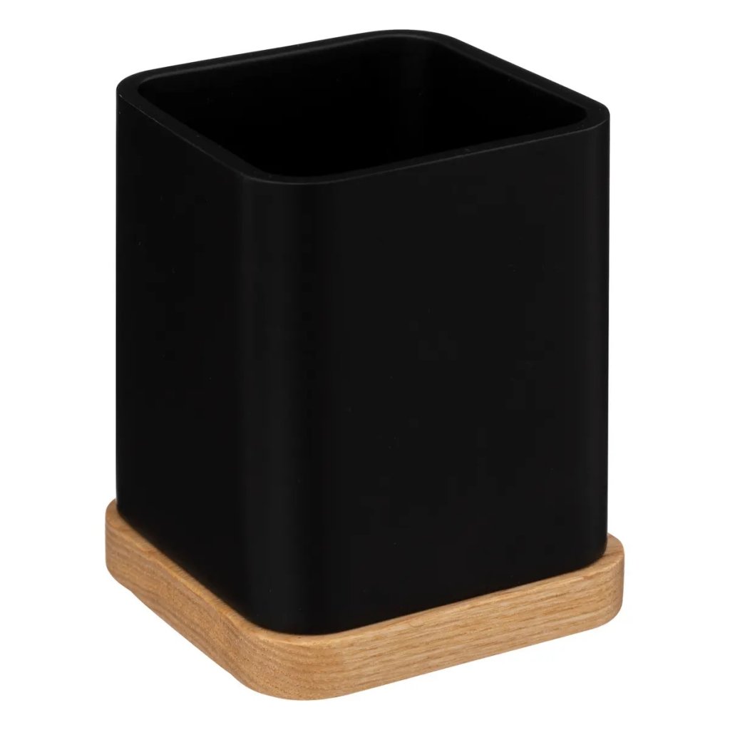 Koupelnový pohár Natureo, černá/s dřevěnými prvky,