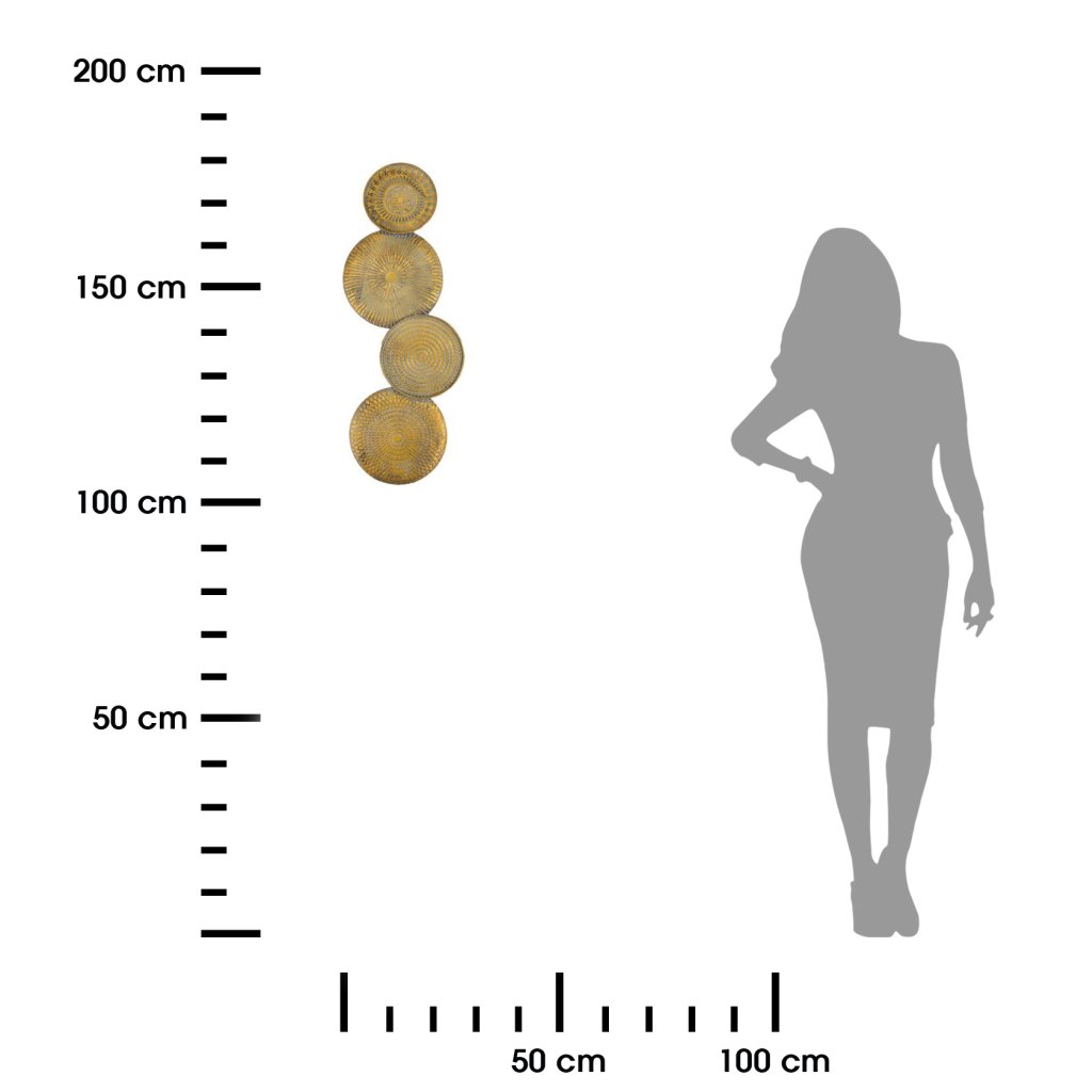 Kompozice se skládá ze čtyř kulatých prvků s různorodou strukturou a plastickým vzorem, které dohromady vytvářejí harmonický celek . Díky tomu se dekorace výborně hodí do moderních, industriálních, glamour nebo vintage interiérů . Umístit ji lze nad pohovku, komodu, do předsíně či ložnice, kde se stane vizuálním středobodem prostoru .
