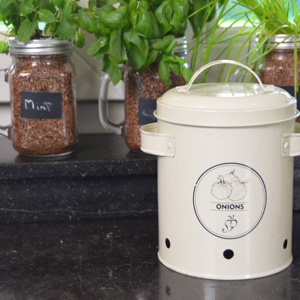 Kovová nádoba na cibuli Vintage, 19,5x17 cm