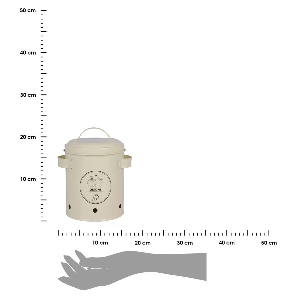 Kuchyňská nádoba na uskladnění cibule je produkt, který je nezbytný v každé kuchyni. Cibuli je nejlépe skladovat na chladném, suchém a dobře větraném místě. Tento typ nádoby bude dokonalým řešením. Nádoba je vyrobena z uhlíkové oceli, vybavena větracími otvory a krytem. Díky tomuto řešení zůstane cibule dlouho čerstvá a sníží se šance na její vyklíčení.Doplňkové parametry
