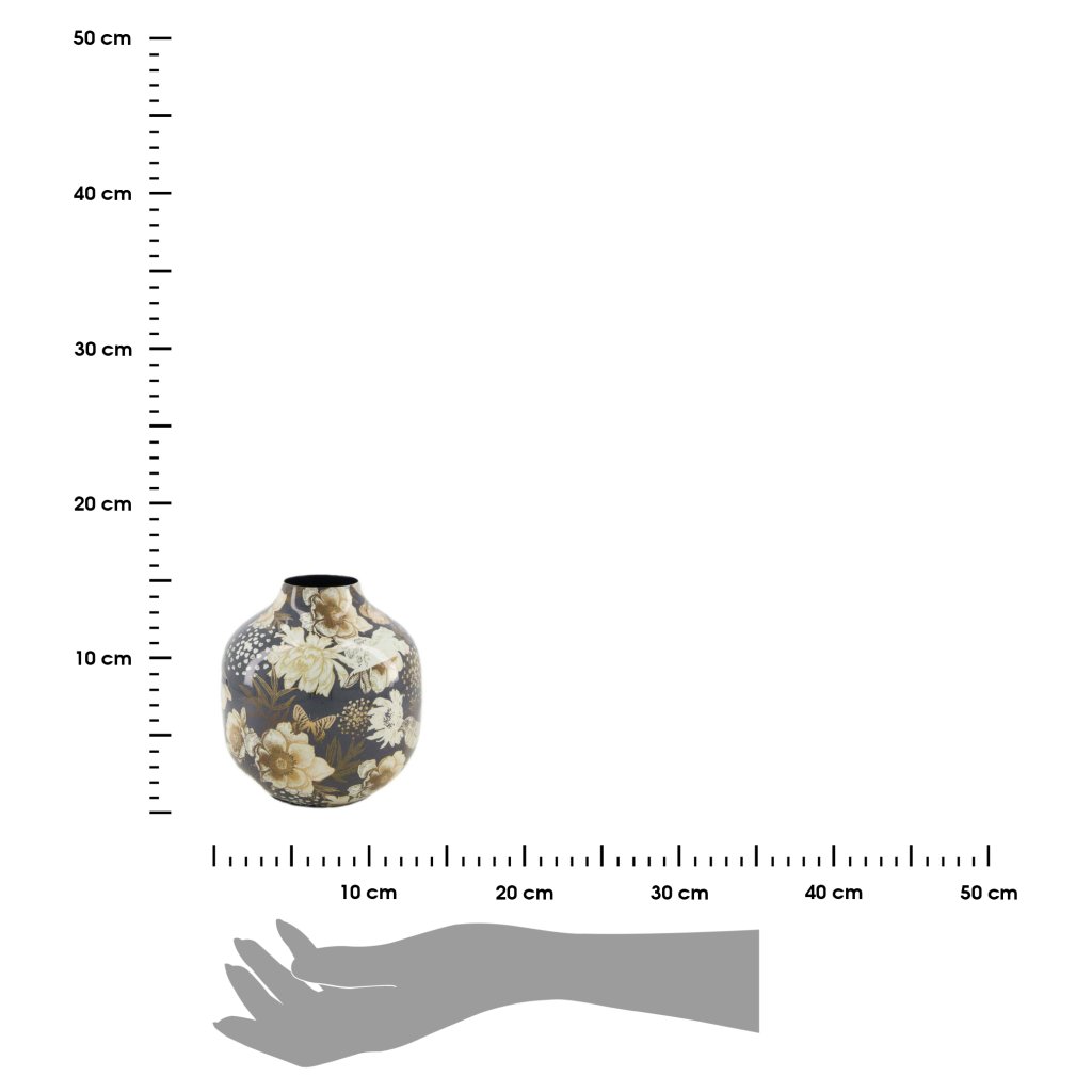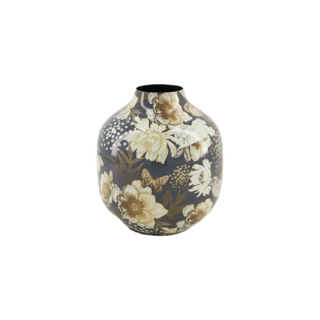 Kovová váza Addison o rozměrech 15,5×14×14 cm je výjimečným dekorativním doplňkem, který vnese do interiéru teplo, eleganci a jemný umělecký akcent . Vyrobená z odolného kovu v tmavě šedé barvě a doplněná o krémově-zlatý květinový motiv , působí sofistikovaně a zároveň útulně.