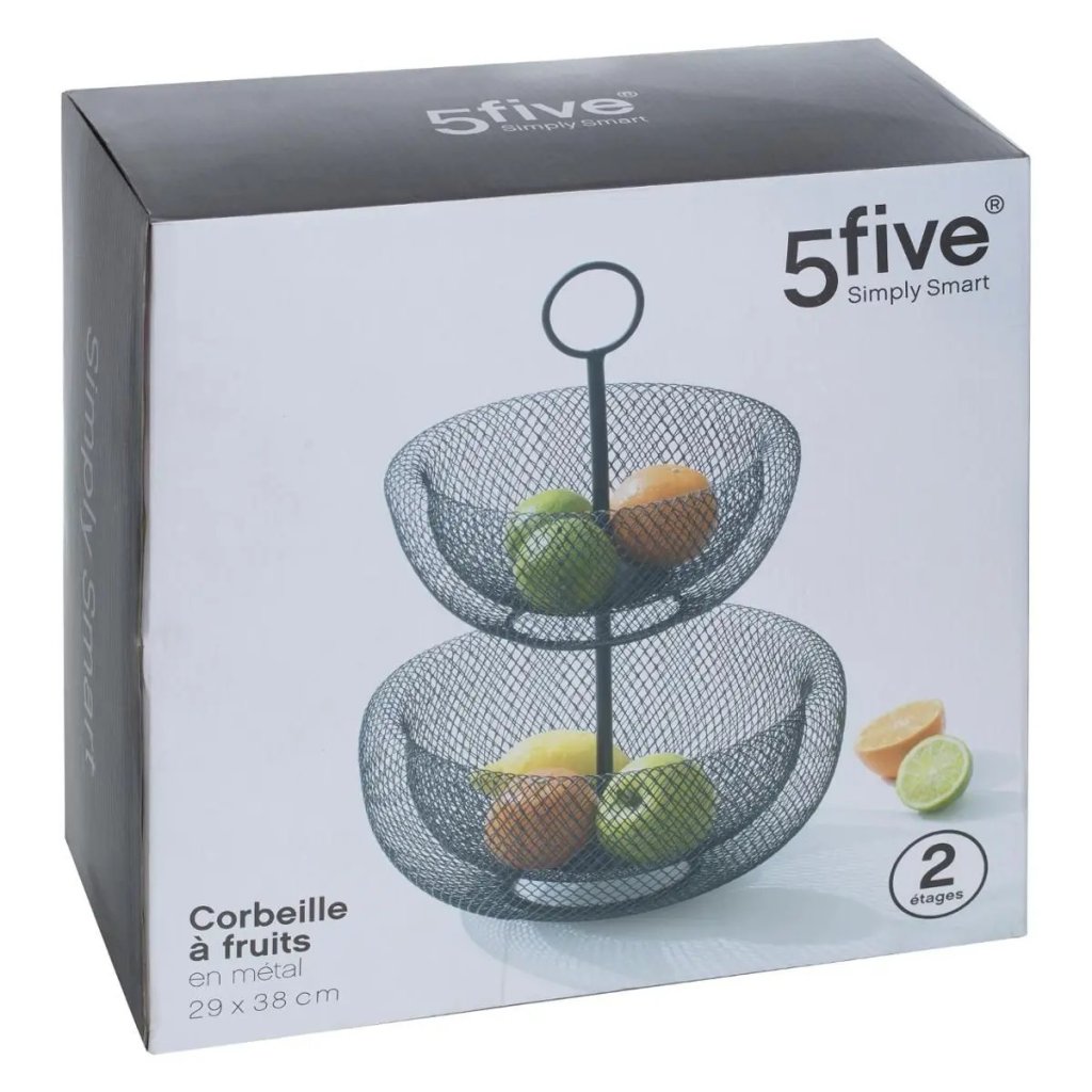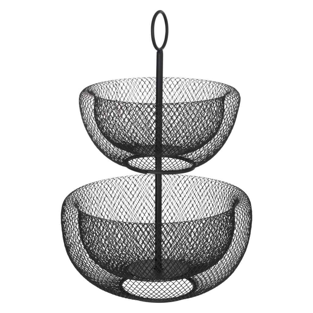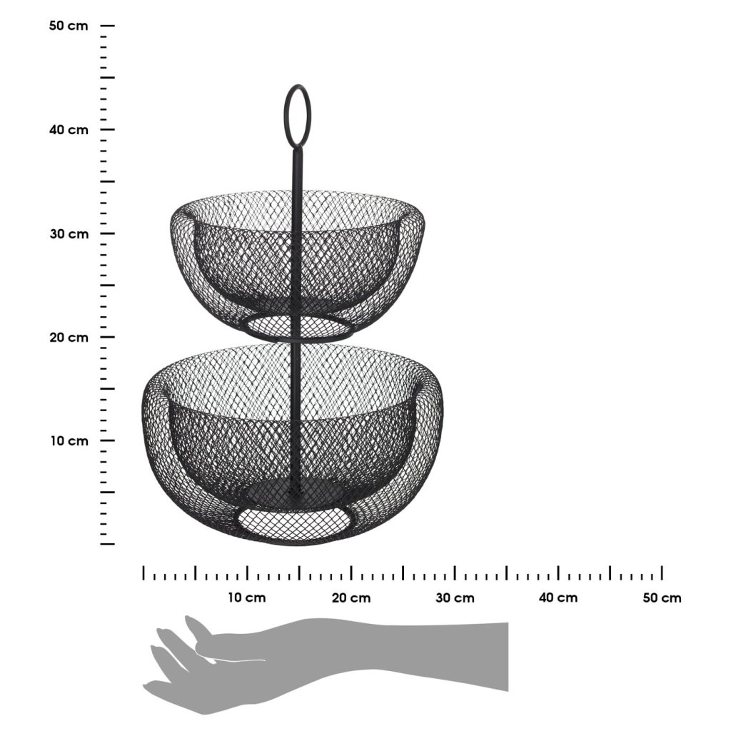Kovový 2-patrový košík na ovoce Black Mesh, 29x43 cm