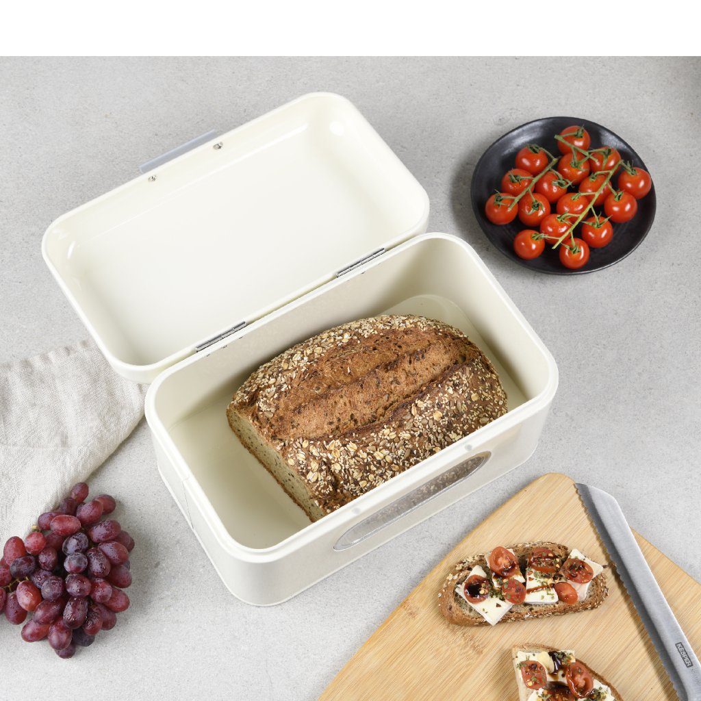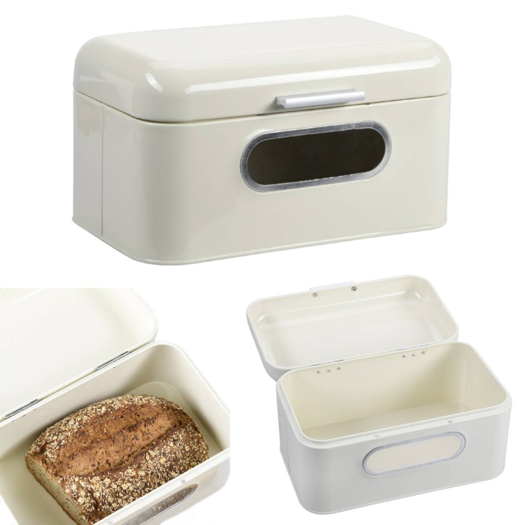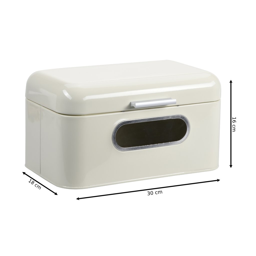 Kulatý kovový úchyt usnadňuje otevírání, zatímco průhledné okénko umožňuje rychlou kontrolu obsahu bez potřeby otevírání chlebníku. Díky svému retro designu se hodí nejen do klasicky zařízených kuchyní, ale také jako stylový prvek v moderních interiérech .