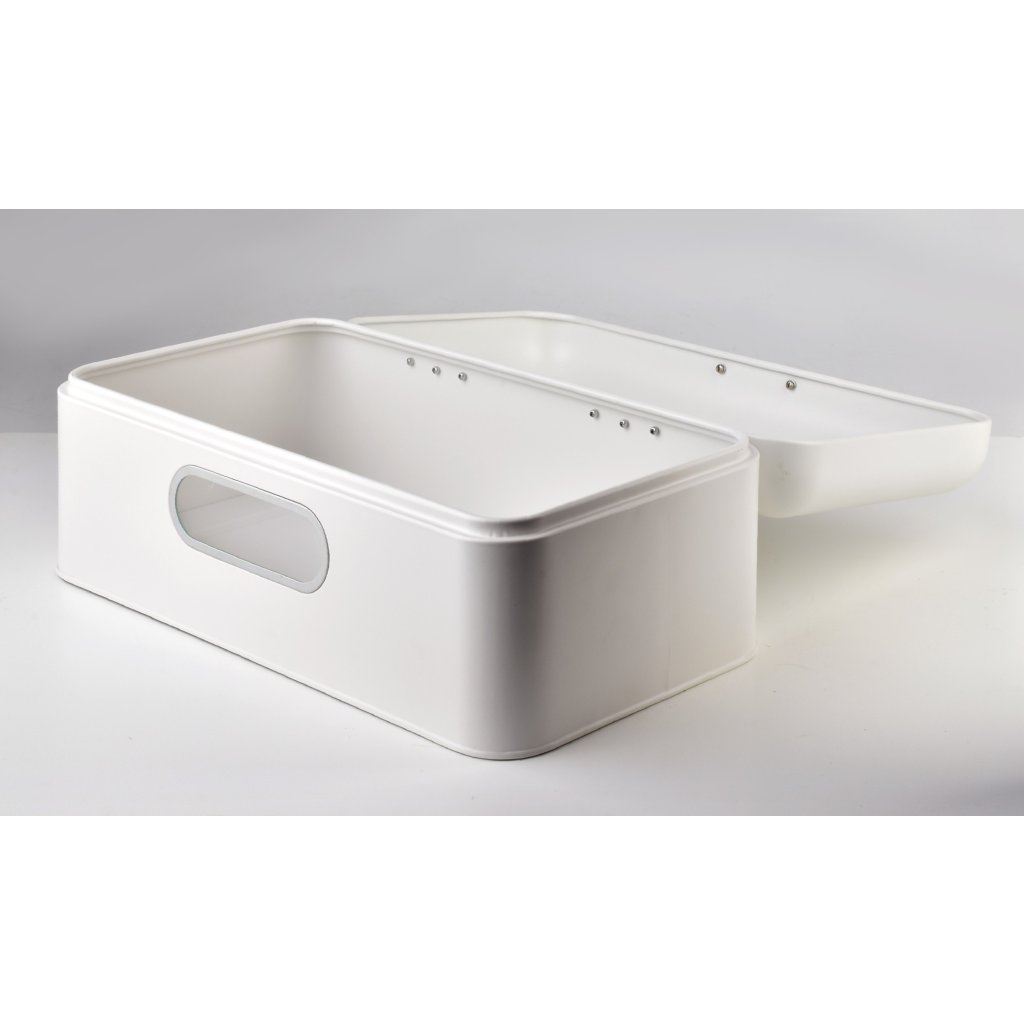 Moderní chlebník pro uskladnění chleba, který bude ozdobným prvkem každé kuchyně. Celý je vyroben z kvalitního kovu, díky čemuž je nádoba odolná a zaručuje těsnost. Kryt je vybaven rukojetí, která usnadňuje otevírání. Chlebník se díky svému univerzálnímu designu hodí do klasických i modernějších aranžmá a dodá interiéru styl a originalitu.Buďte první, kdo napíše příspěvek k této položce.