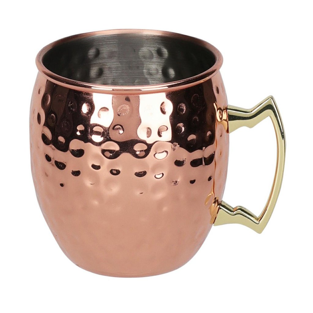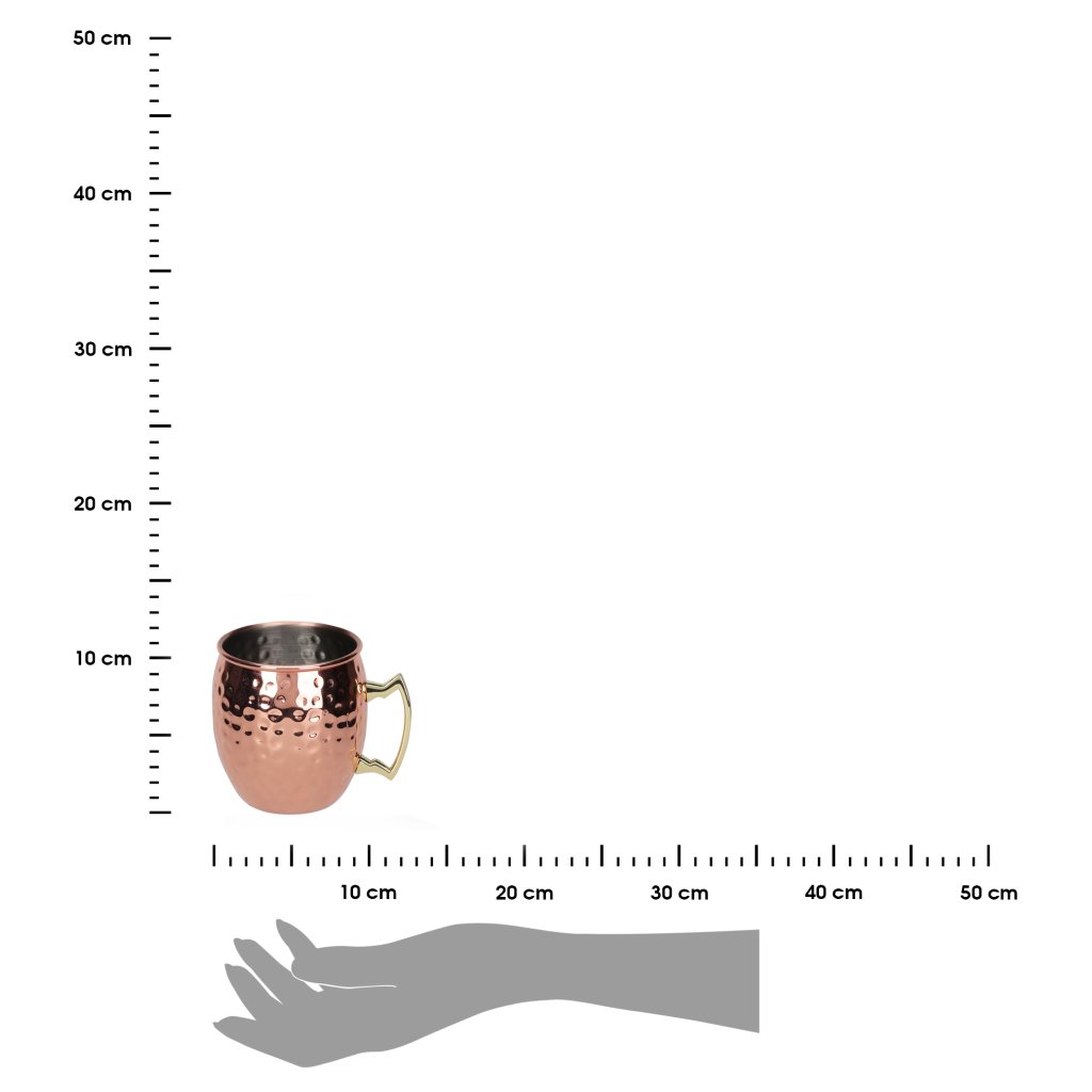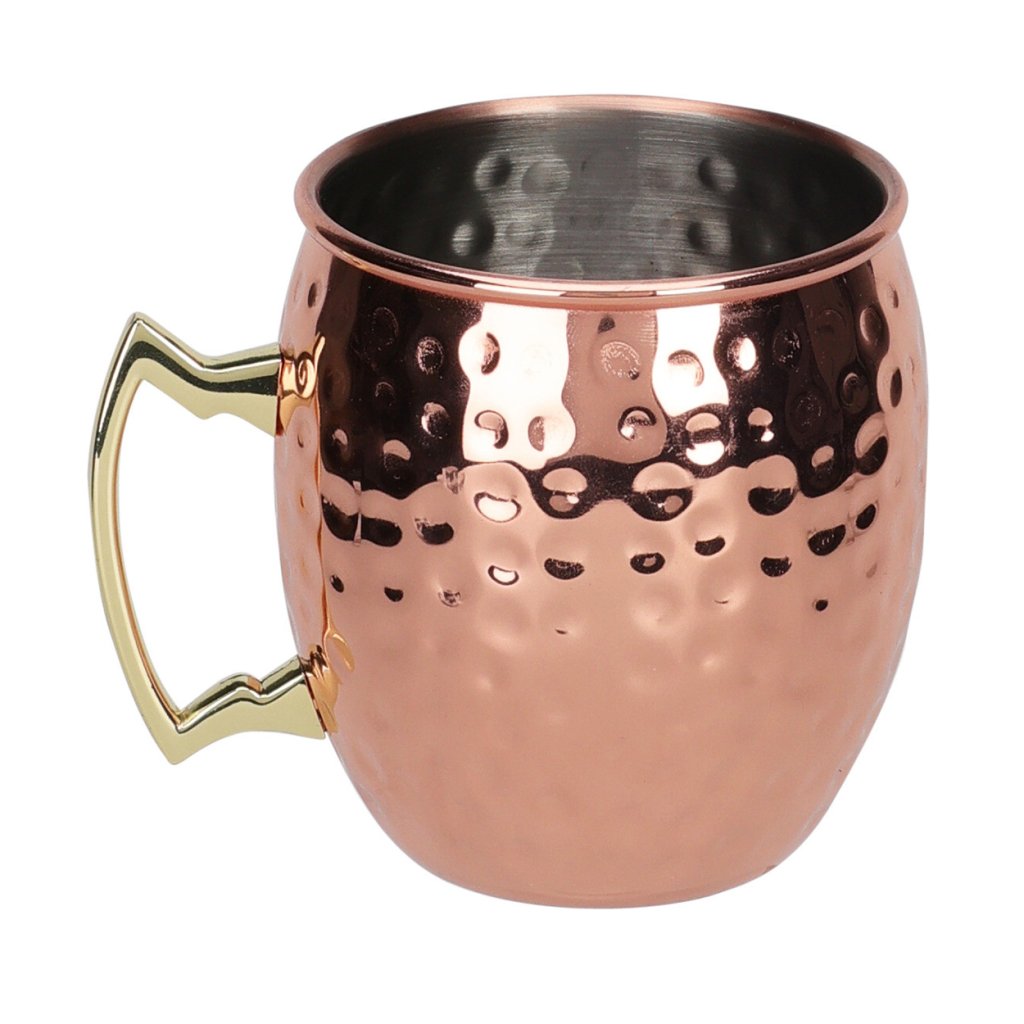 Odolný nerezový hrnek, který se určitě stane vaší oblíbenou nádobou na pití nápojů Mul Moskwa, ale také na kávu, čaj či jiné nápoje. Hrnek se vyznačuje trvanlivostí a odolností proti poškození. Může se stát nepostradatelným společníkem na cesty či turistiku. Je lehký, pohodlný a můžete si být jisti, že se nikdy nerozbije. Pozornost přitahuje originální design. Při jeho výrobě byl použit módní efekt kladiva.Nerezová sklenička zaručuje odolnost, pohodlí a vynikající chuť nápojů kdykoli a kdekoli. Je ideální pro lidi, kteří oceňují vysokou kvalitu, funkčnost a ekologii.