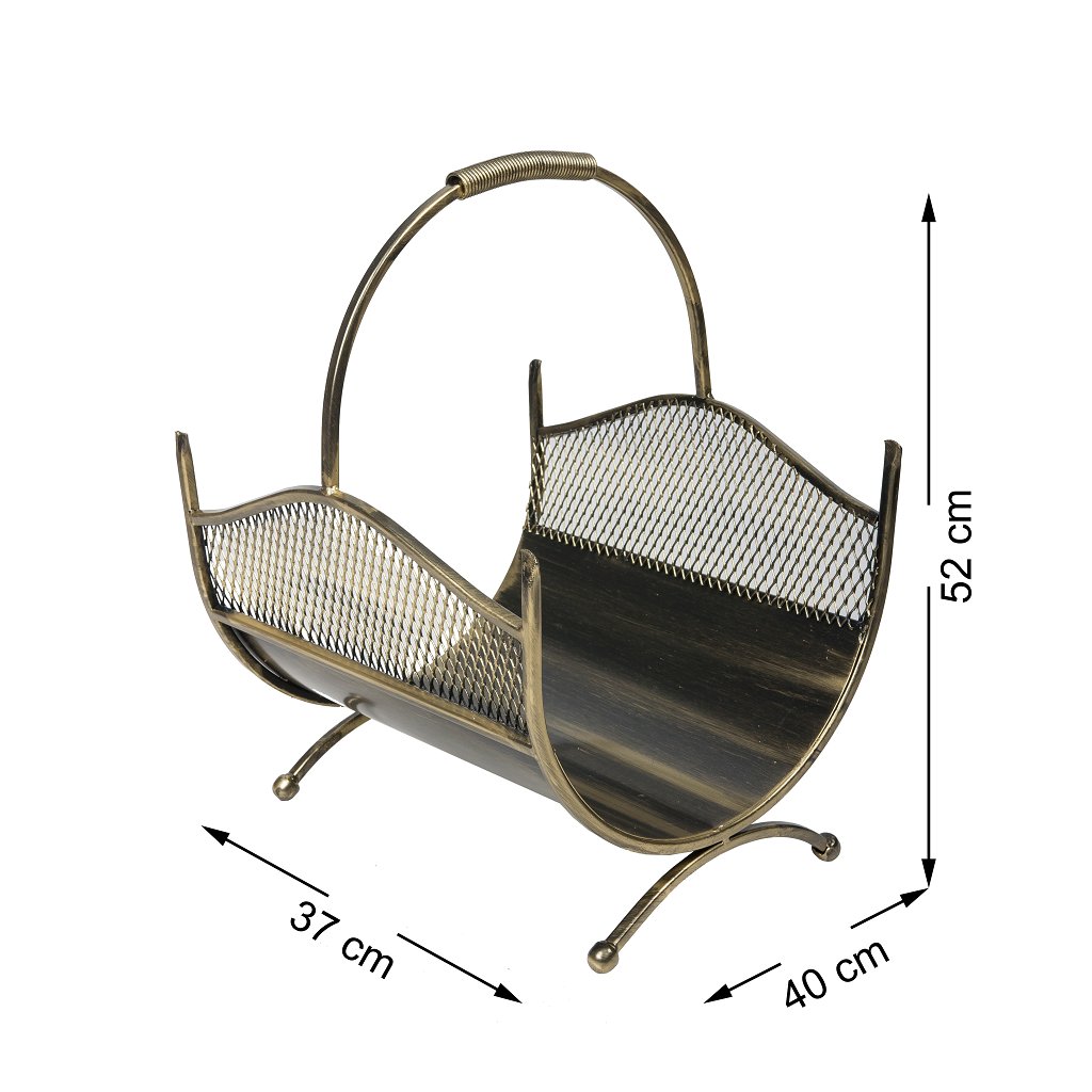 V naší nabídce naleznete elegantní koš na palivové dříví. Koš je vyroben z pevného plechu v černé barvě se zlatou patinou, který zabraňuje vysypání kousků dřeva.Doplňkové parametry