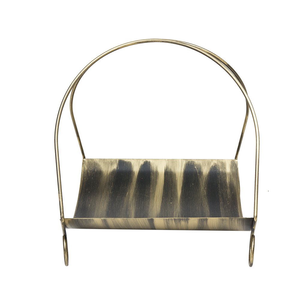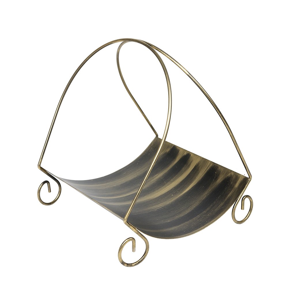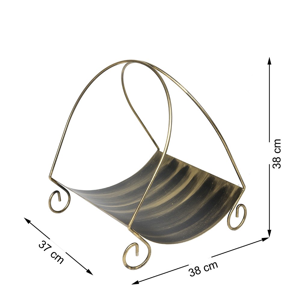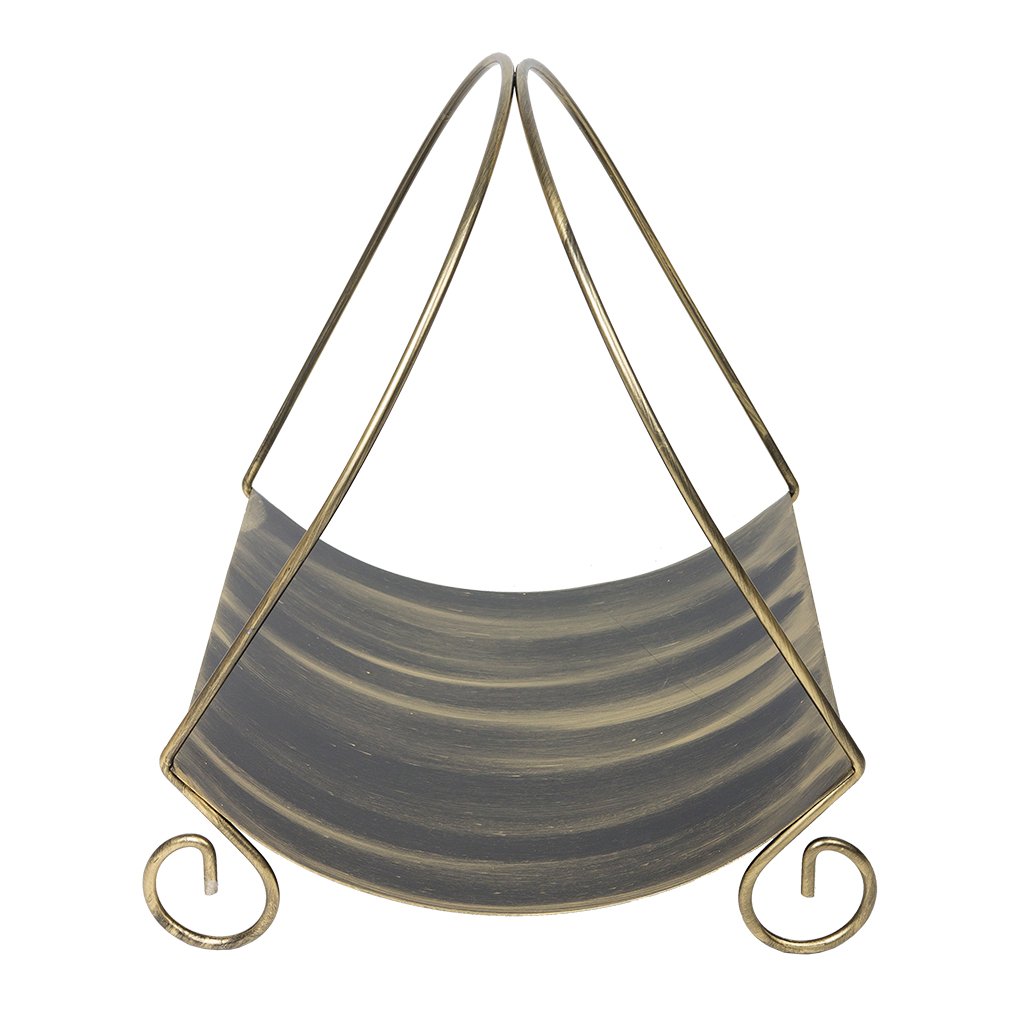Předmětem nabídky je elegantní košík na dřevo. Koš je vyroben z pevného plechu, který zabraňuje vysypání kousků dřeva.Kovová práce je ruční práce. Uvedené rozměry se mohou lišit od skutečných o 2-3 cm. Barva - černý opál se zlatou patinou.
