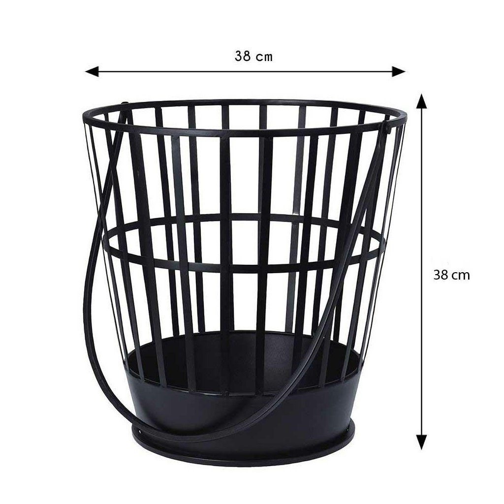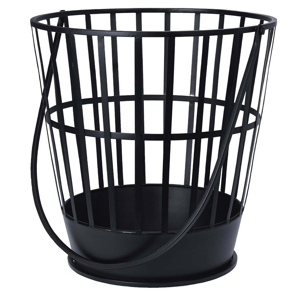 Moderní koš s rukojetí na zavěšení nebo přenášení. Vyrobeno z černého kovu. Poslouží také jako stojan na palivové dřevo. Dá se použít také jako nádoba na různé druhy příslušenství. Koš ideální pro interiéry v moderním, skandinávském, loftovém nebo industriálním stylu.Doplňkové parametry
