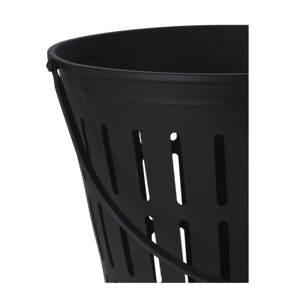 Moderní koš s rukojetí na zavěšení nebo přenášení. Vyrobeno z černého kovu. Poslouží také jako stojan na palivové dřevo. Dá se použít také jako nádoba na různé druhy příslušenství. Koš ideální pro interiéry v moderním, skandinávském, loftovém nebo industriálním stylu.Doplňkové parametry