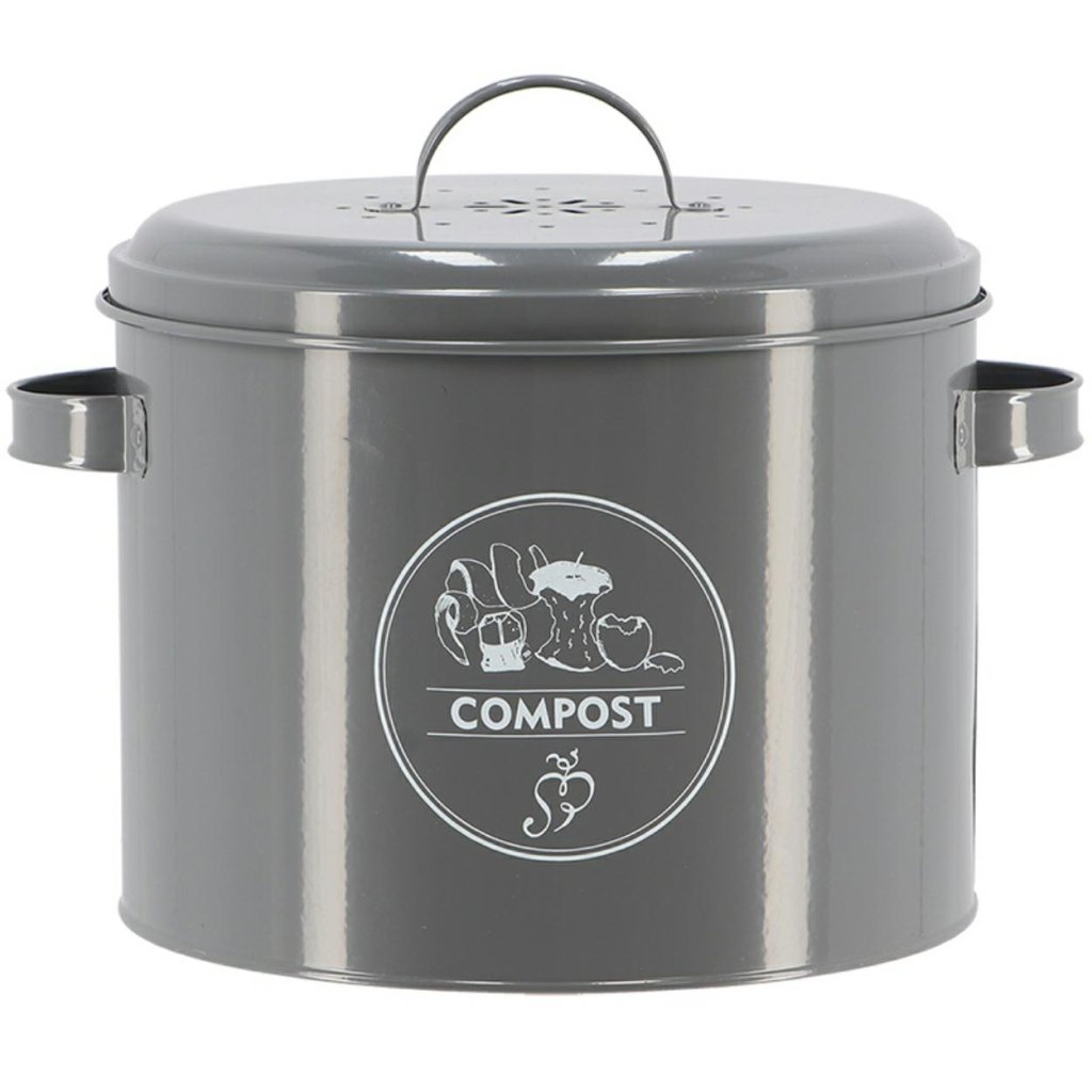 Kovový kuchyňský kompostér Vintage Gray, 27x21,5 cm