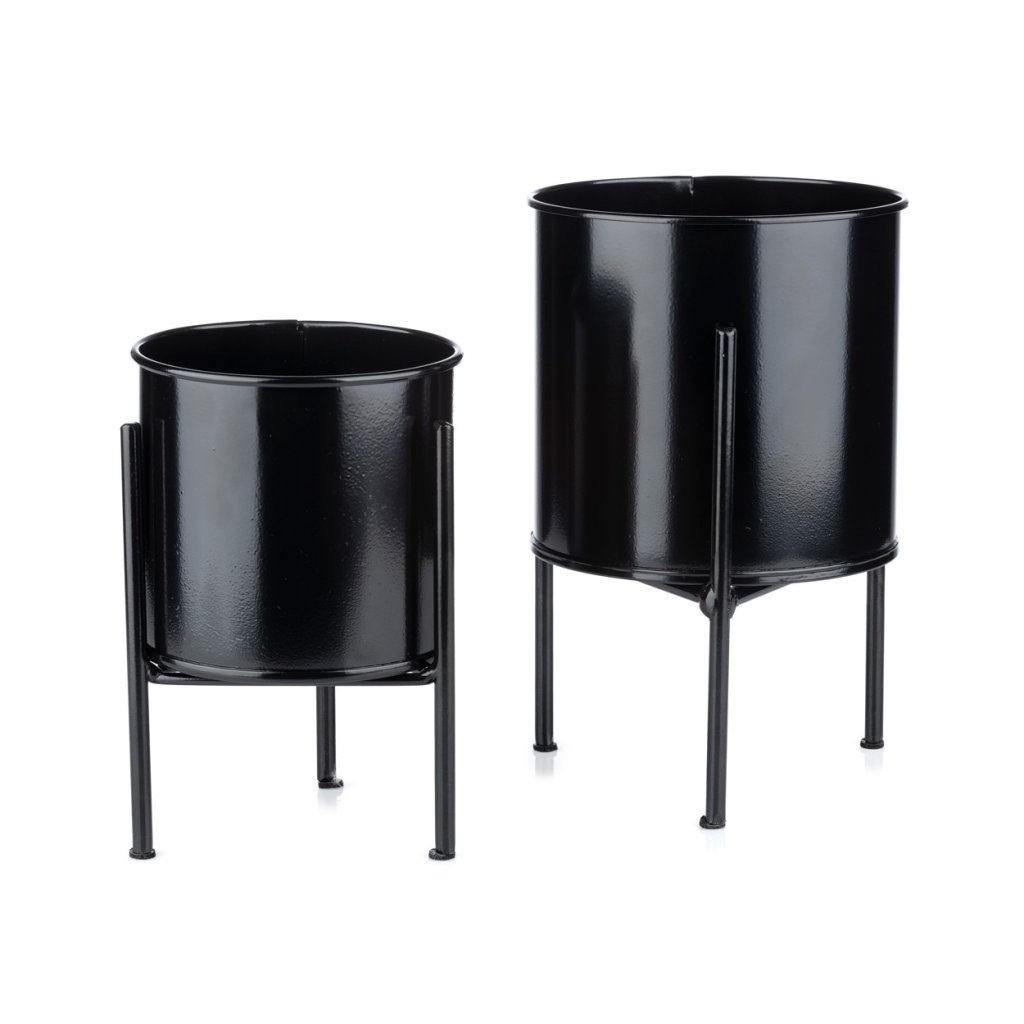 KOVOVÝ KVĚTINÁČ SE STOJÁNEM BLCK 24X14 CM ČERNÁ