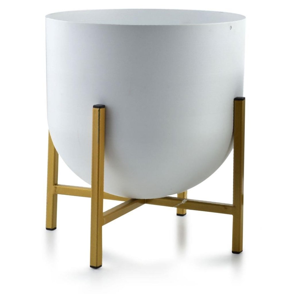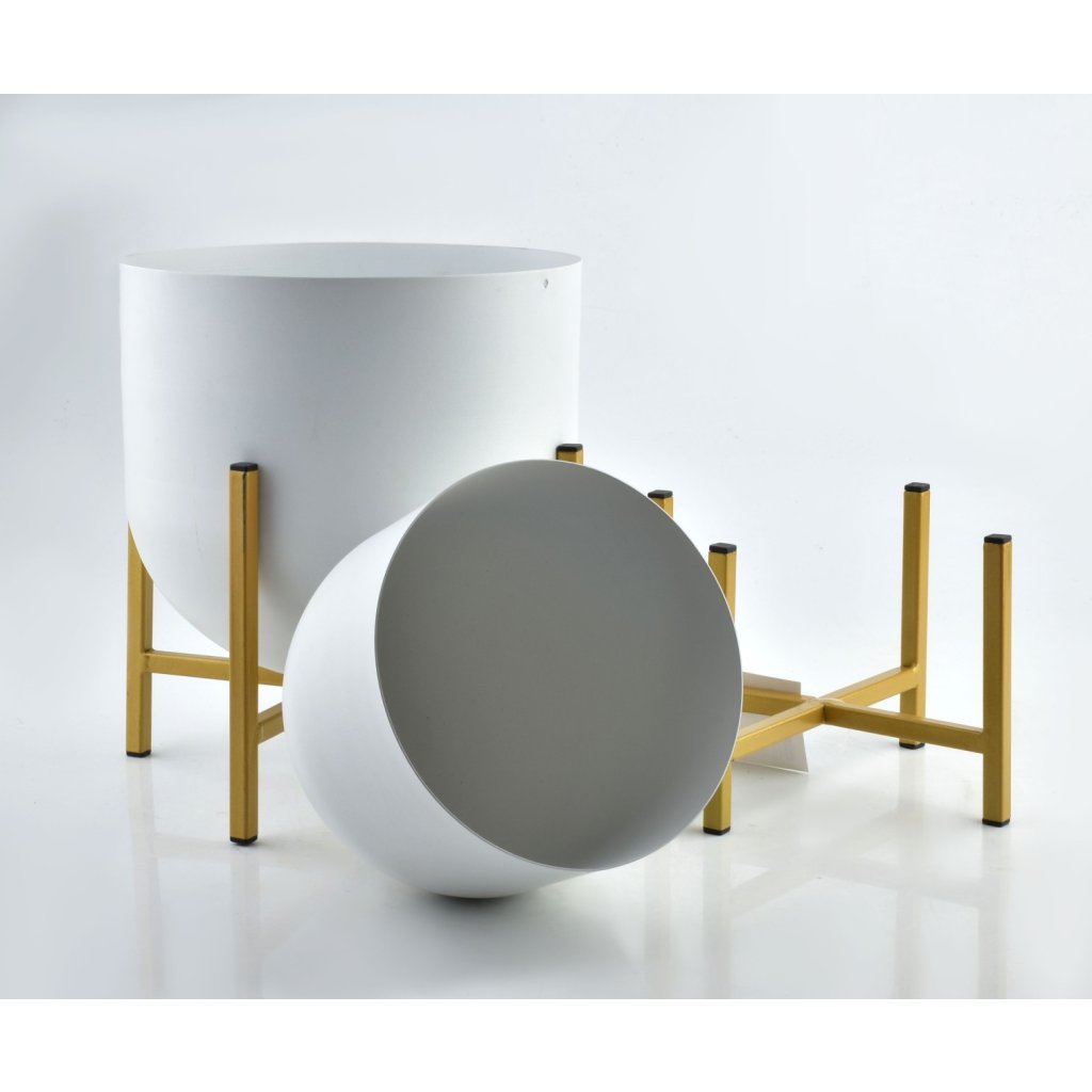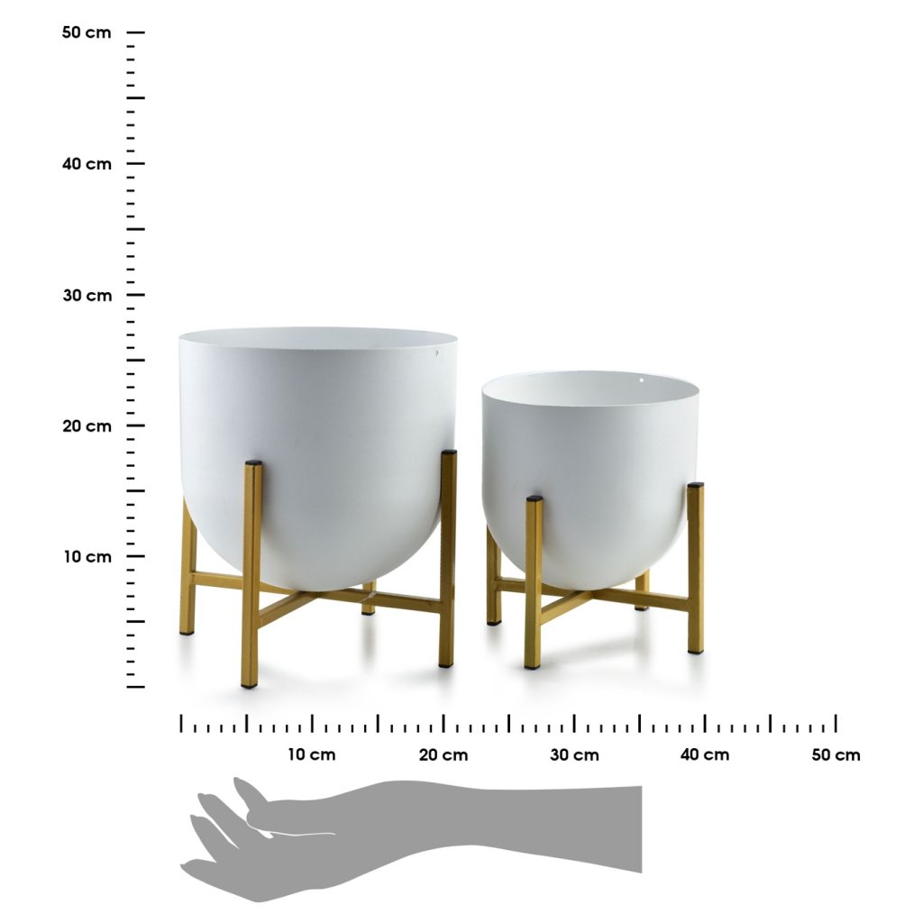 KOVOVÝ KVĚTINÁČ SE STOJÁNEM BOULE SADA 2KS 20X22 CM+16X17 CM BÍLÁ/ZLATÁ
