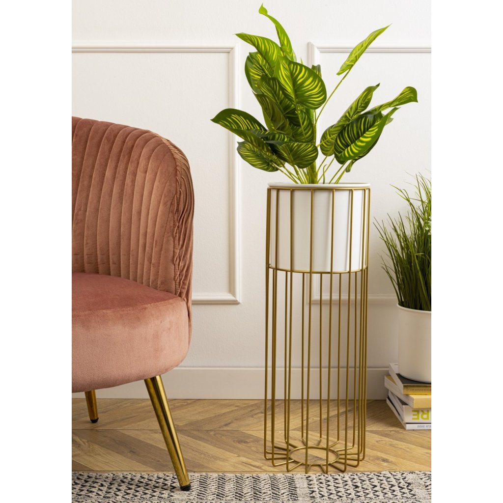 Květináč s elegantním stojanem, který zaujme svým designem a praktičností. Jeho moderní styl z něj činí krásnou dekoraci ideální do každého interiéru v domácnosti. Design dokonale ladí se zelenými rostlinami, které spolu vytvářejí harmonii estetiky a funkčnosti. Díky kovovému stojanu květináč působí noblesním dojmem.Produkt se pyšní odolností při které konstrukce zajišťuje bezpečnost rostlin. Květináč je vyroben z kovu, nepraská, nedeformuje se a je vhodný prakticky pro všechny druhy rostlin.