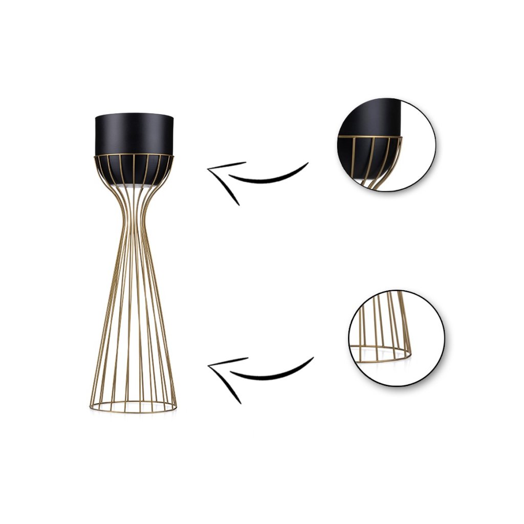 Květináč s elegantním stojanem, který zaujme svým designem a praktičností. Jeho moderní styl z něj činí krásnou dekoraci ideální do každého interiéru v domácnosti. Design dokonale ladí se zelenými rostlinami, které spolu vytvářejí harmonii estetiky a funkčnosti. Díky kovovému stojanu květináč působí noblesním dojmem.Produkt se pyšní odolností při které konstrukce zajišťuje bezpečnost rostlin. Květináč je vyroben z kovu, nepraská, nedeformuje se a je vhodný prakticky pro všechny druhy rostlin.