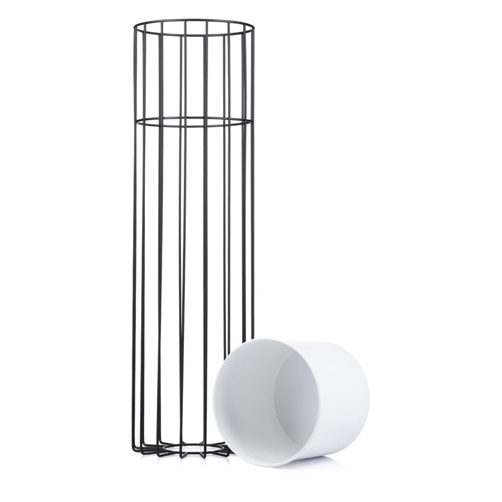 KOVOVÝ KVĚTINÁČ SE STOJÁNEM GLAM 70X20 CM BÍLÁ/ČERNÁ
