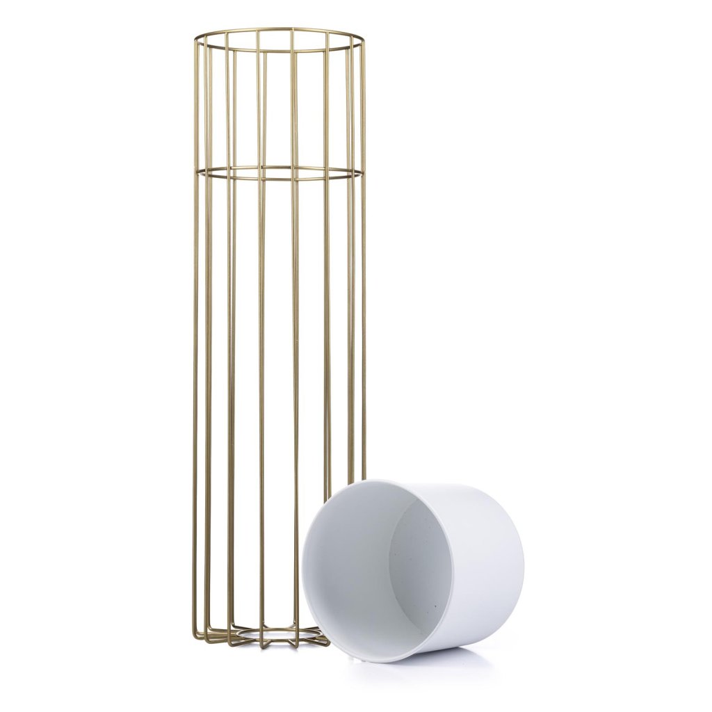 KOVOVÝ KVĚTINÁČ SE STOJÁNEM GLAM 70X20 CM BÍLÁ/ZLATÁ