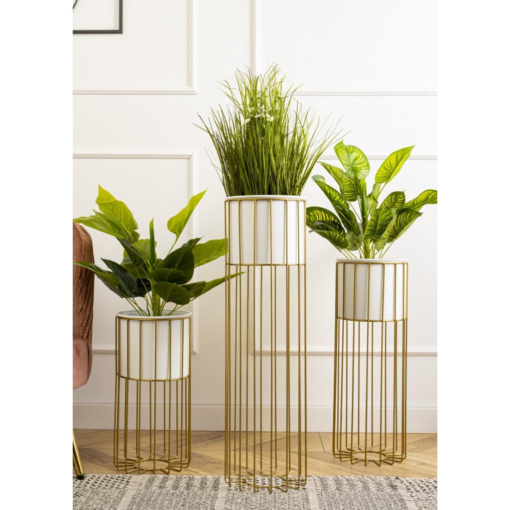 Květináč s elegantním stojanem, který zaujme svým designem a praktičností. Jeho moderní styl z něj činí krásnou dekoraci ideální do každého interiéru v domácnosti. Design dokonale ladí se zelenými rostlinami, které spolu vytvářejí harmonii estetiky a funkčnosti. Díky kovovému stojanu květináč působí noblesním dojmem.Produkt se pyšní odolností při které konstrukce zajišťuje bezpečnost rostlin. Květináč je vyroben z kovu, nepraská, nedeformuje se a je vhodný prakticky pro všechny druhy rostlin.