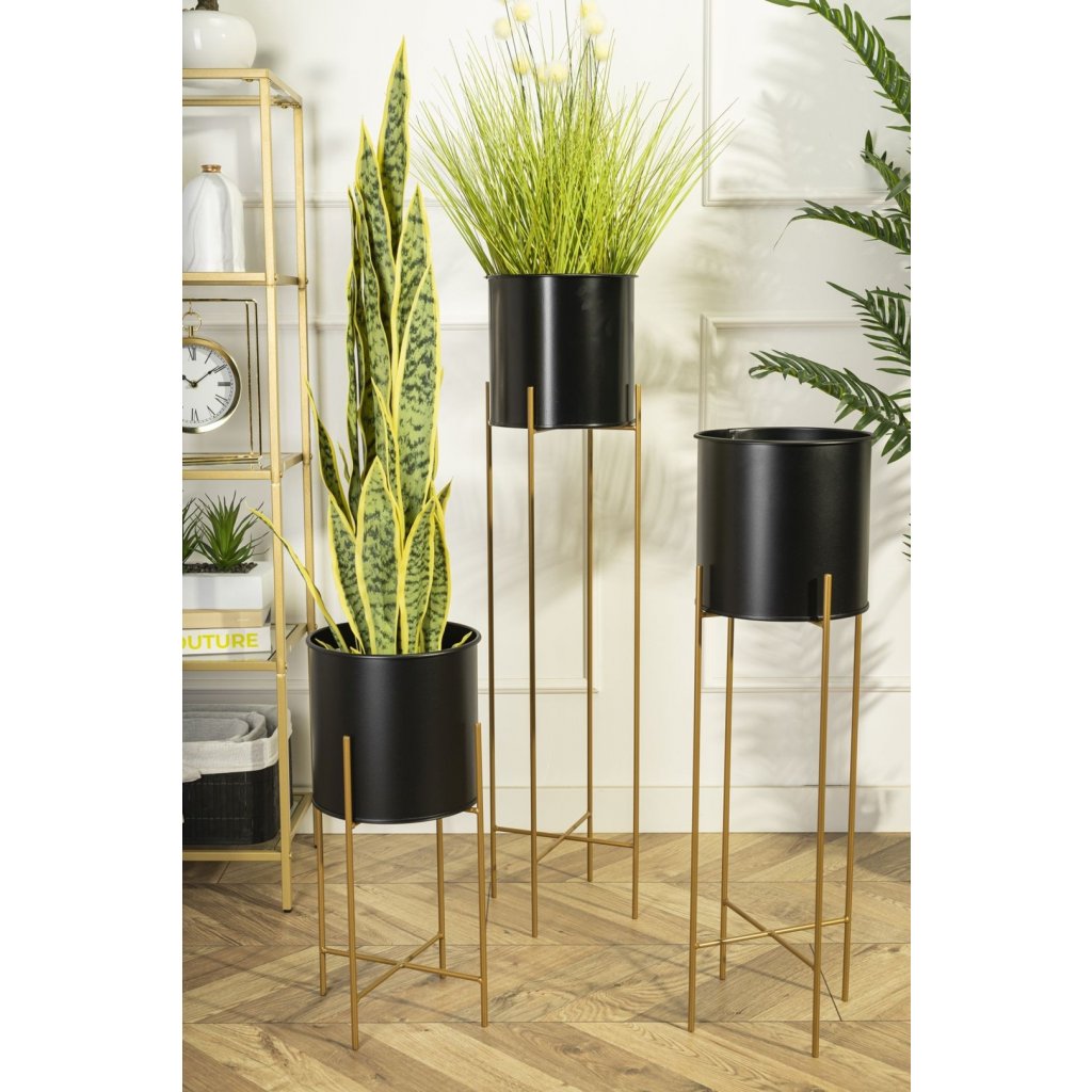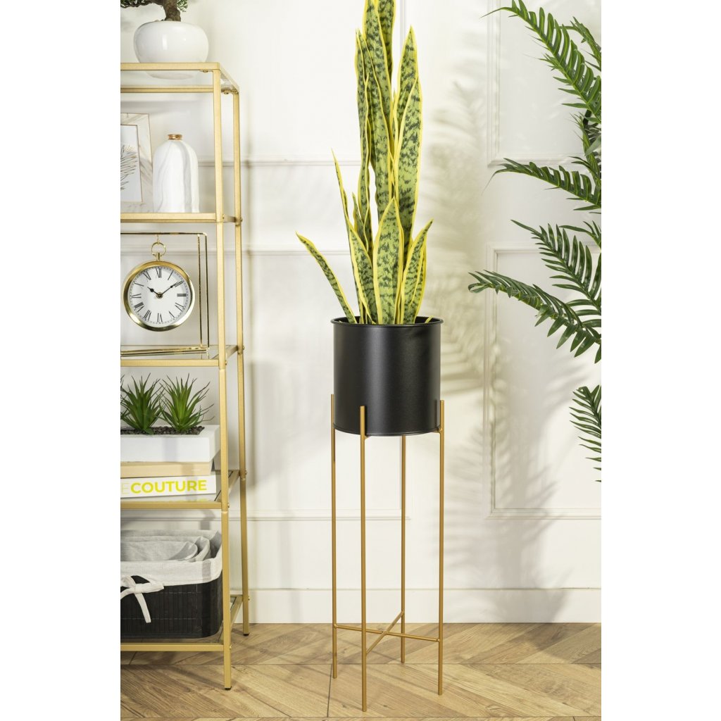KOVOVÝ KVĚTINÁČ SE STOJÁNEM GLAMOUR 75X24 CM ČERNÁ/ZLATÁ
