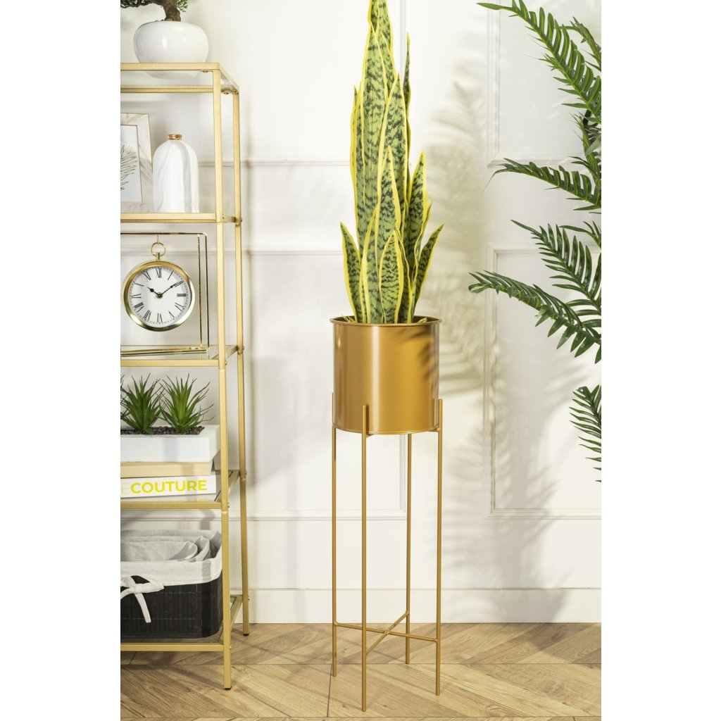 KOVOVÝ KVĚTINÁČ SE STOJÁNEM GOLDEN 75X21 CM ZLATÁ
