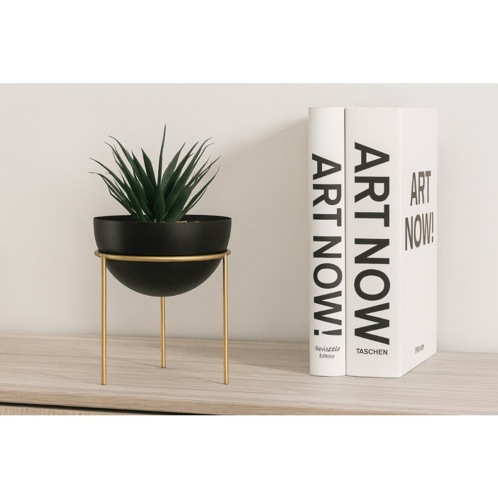 KOVOVÝ KVĚTINÁČ SE STOJÁNEM LOFT 20X15 CM ČERNÁ/ZLATÁ